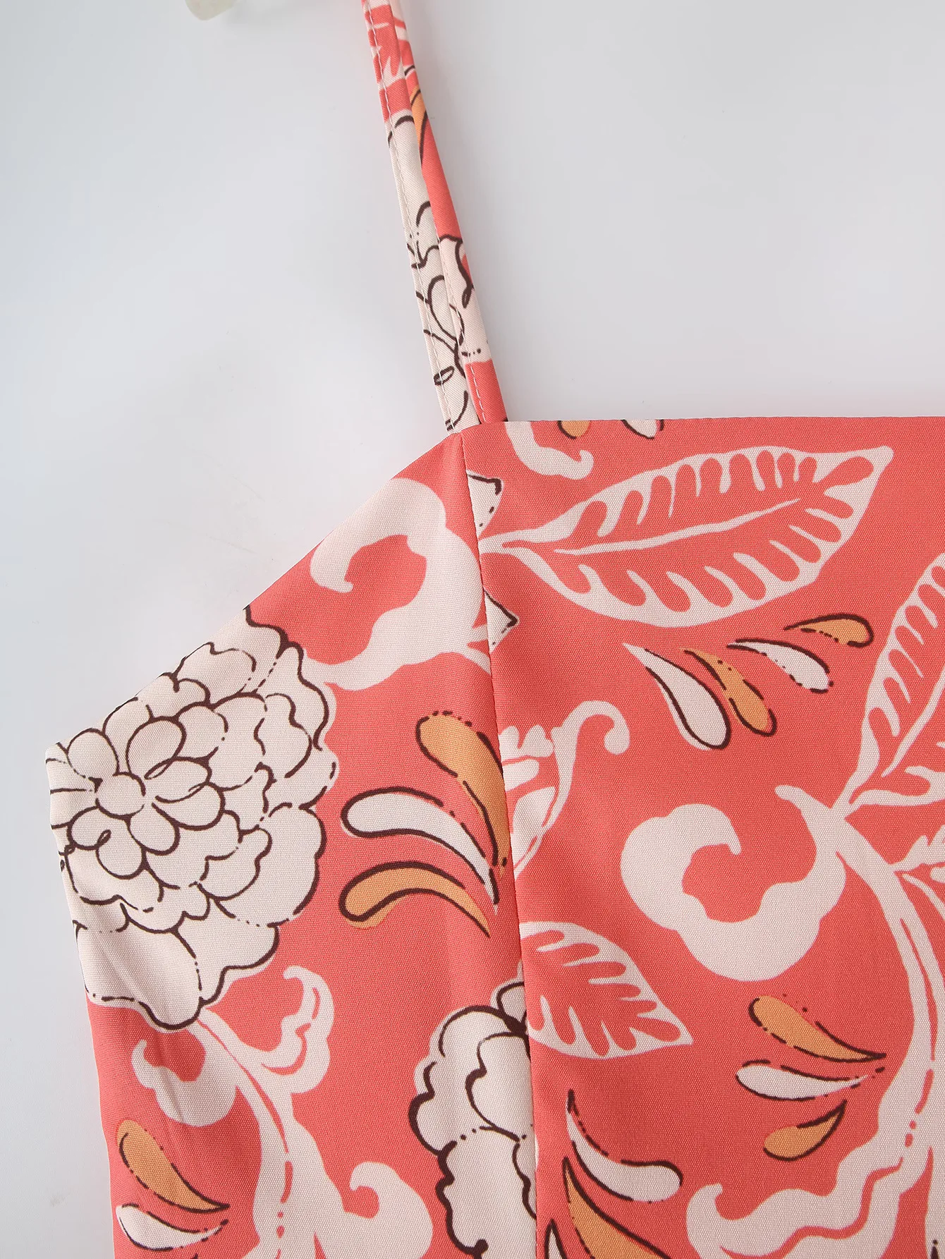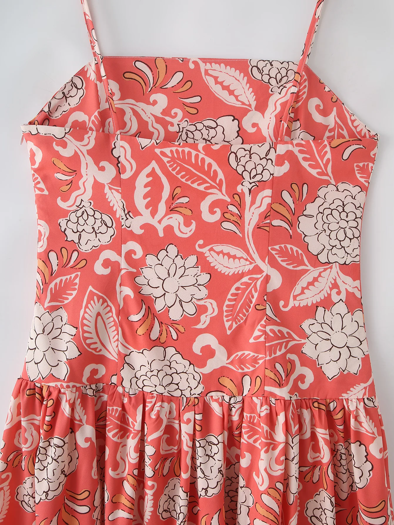 TAVIMART - European And American Style Women's Flower Printed Slip Dress Casual Vacation Beach Long Dress Fashion Female Vestidos