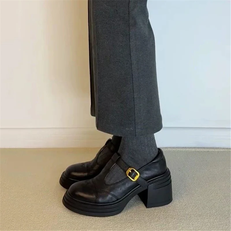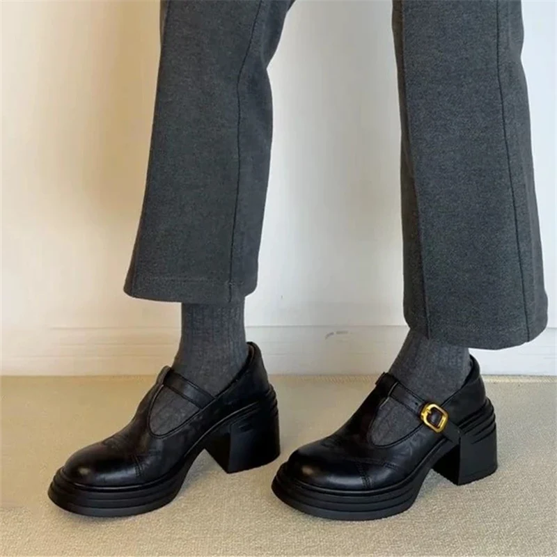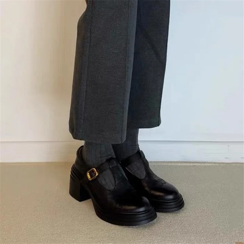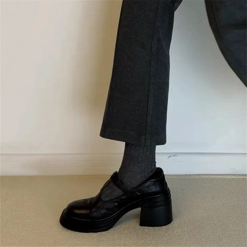 TAVIMART - Fabric High PU Hoof Heels Rubber High Hoof Heels PU Rubber