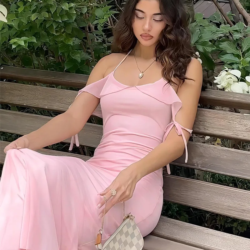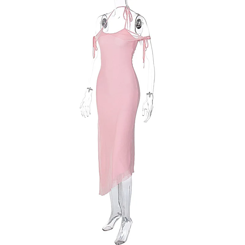 Tavimart Fashion Backless Dress Summer Bandage Evening V-Neck Slip Mesh Dress for Woman Strap Prom Gown Sexy Dresses Night Club Outfits