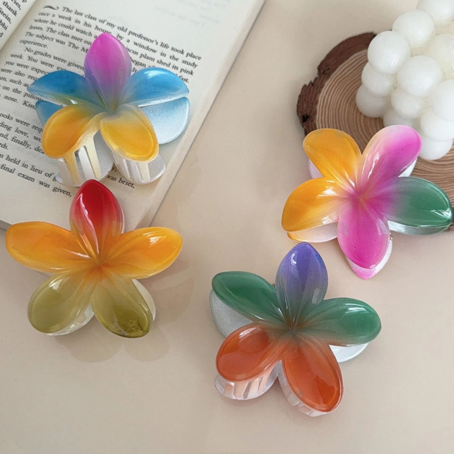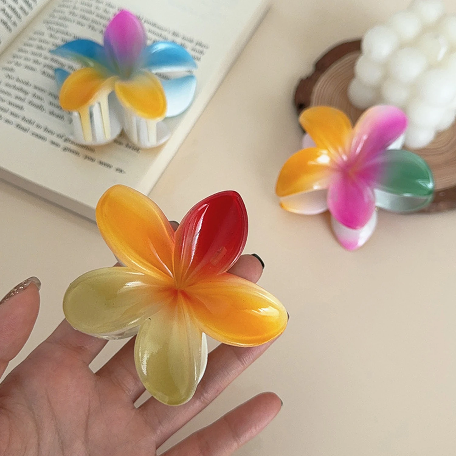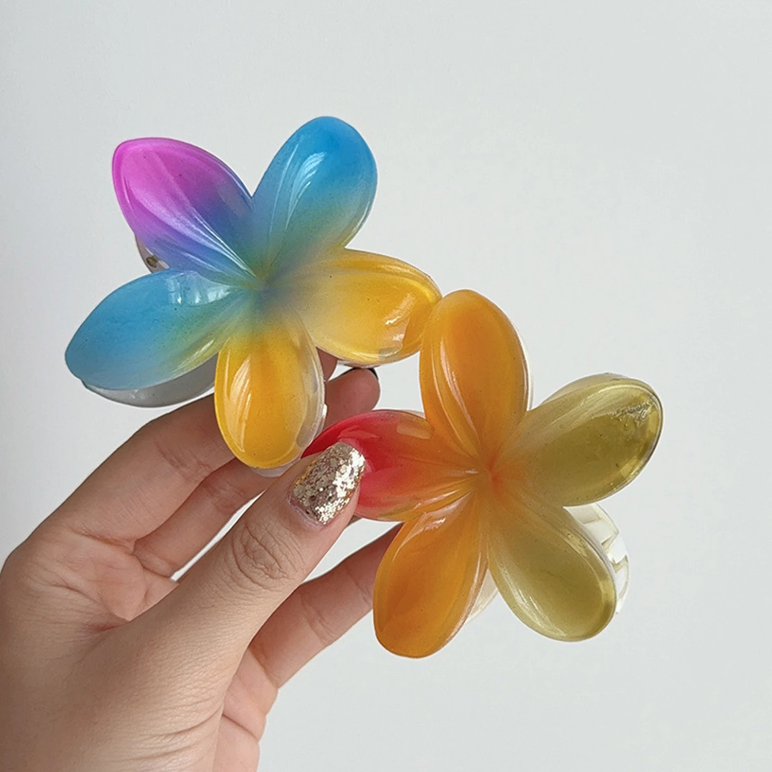 TAVIMART - Fashion Gradient Rainbow Crab Clip Large Flower Hair Clips Hair Claw For Women Hairpin Beach Vacation Bohemia Hair Accessories