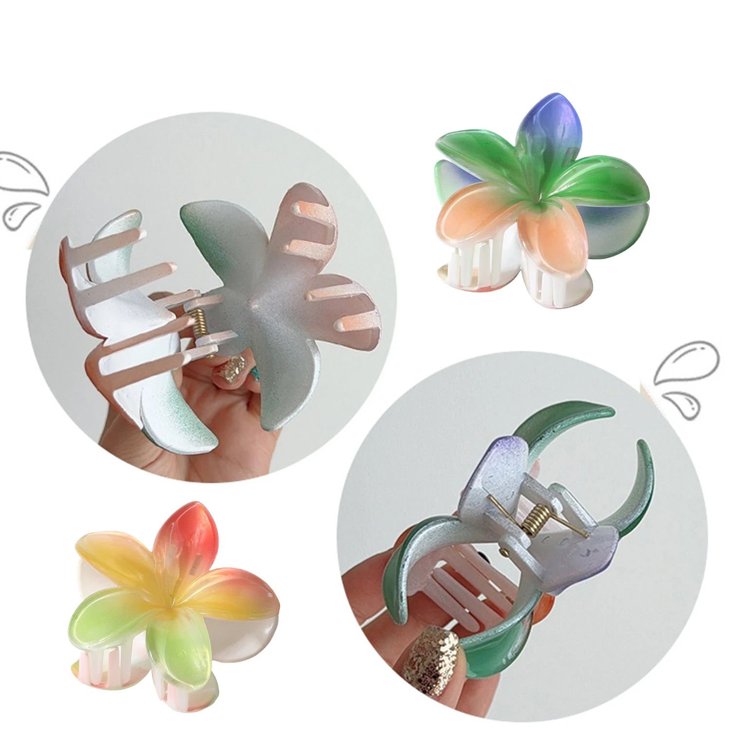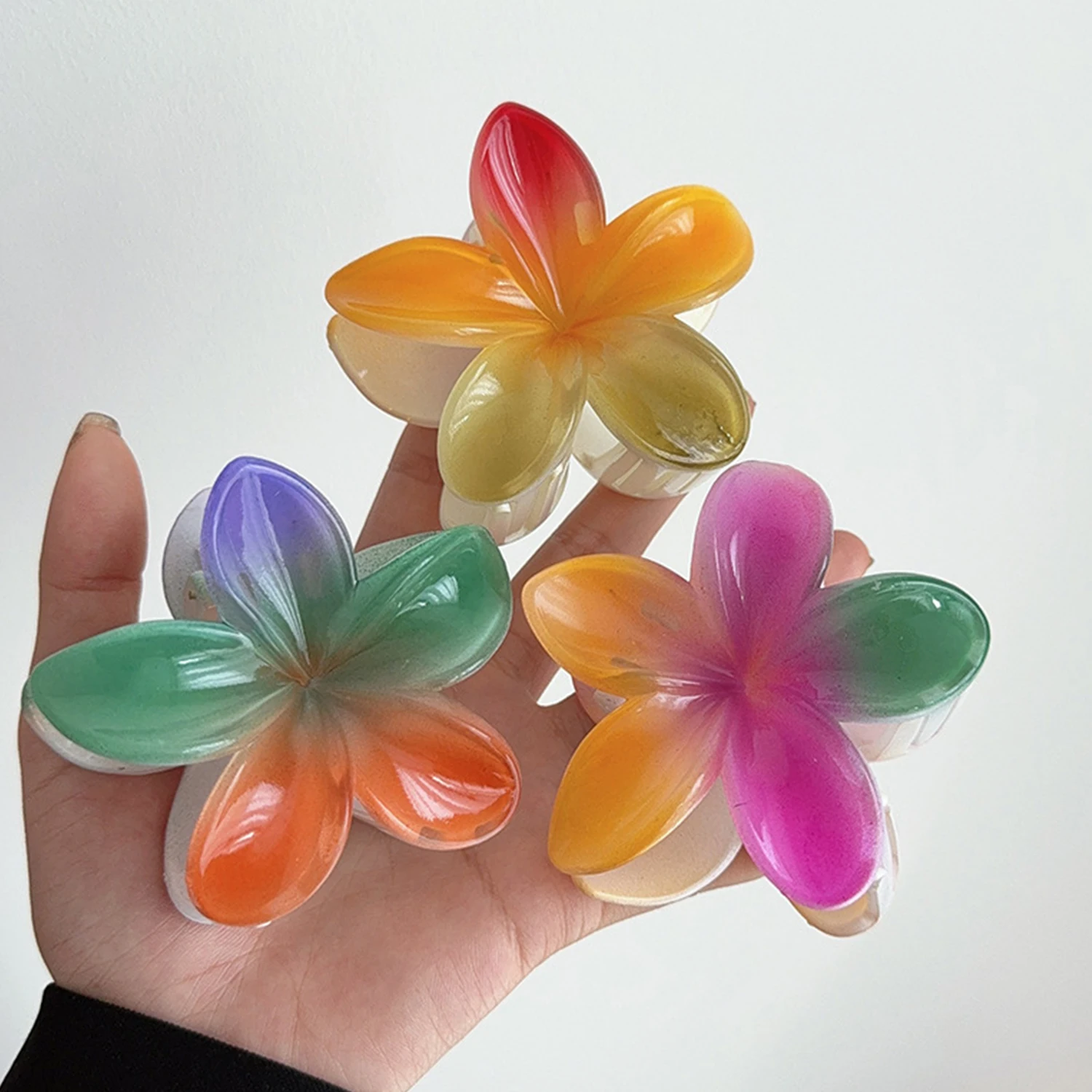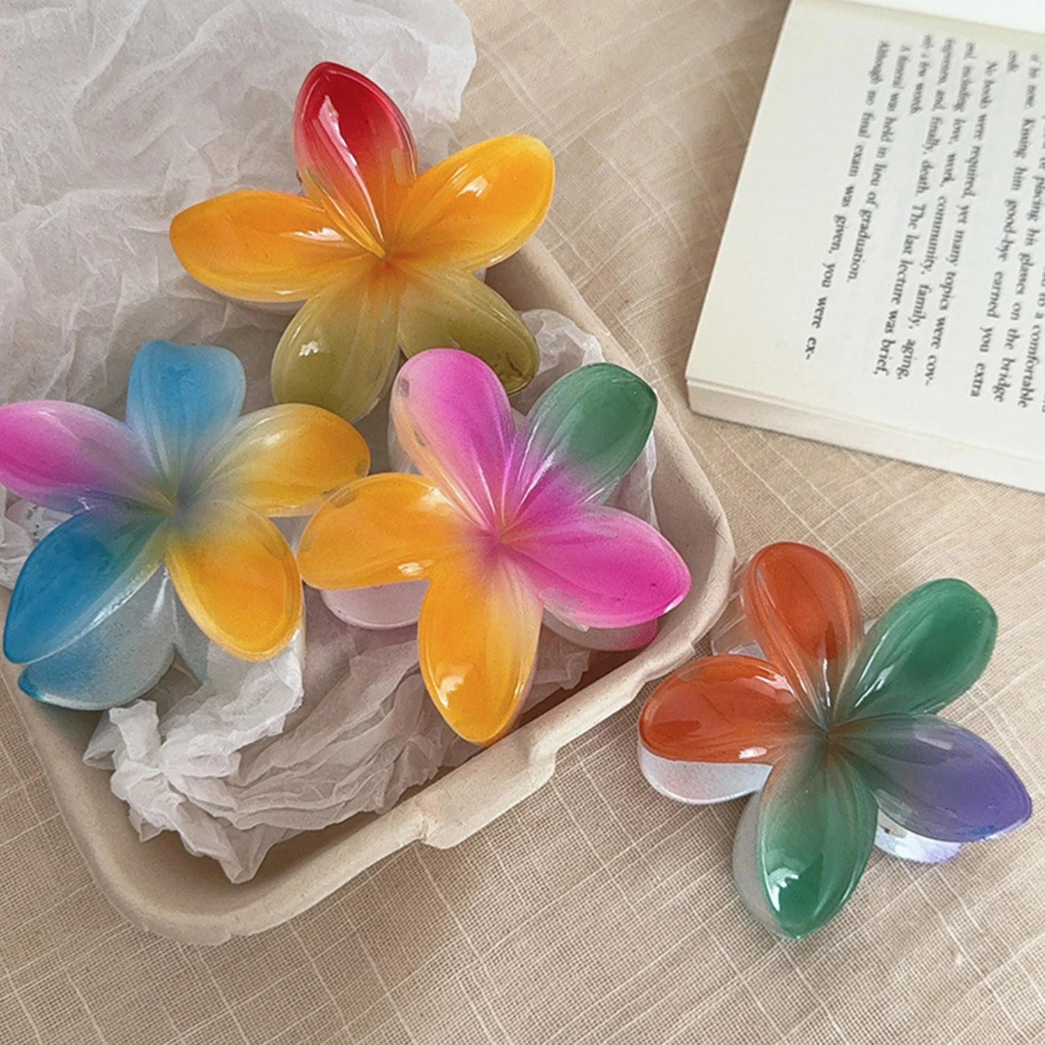 TAVIMART - Fashion Gradient Rainbow Crab Clip Large Flower Hair Clips Hair Claw For Women Hairpin Beach Vacation Bohemia Hair Accessories