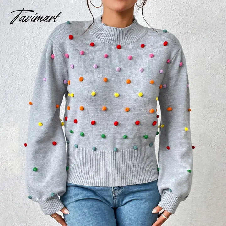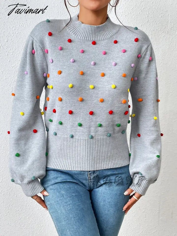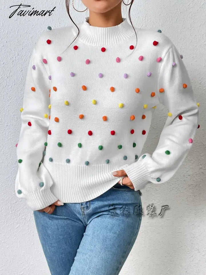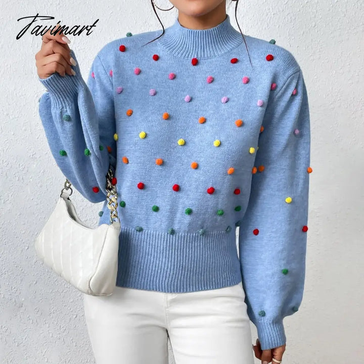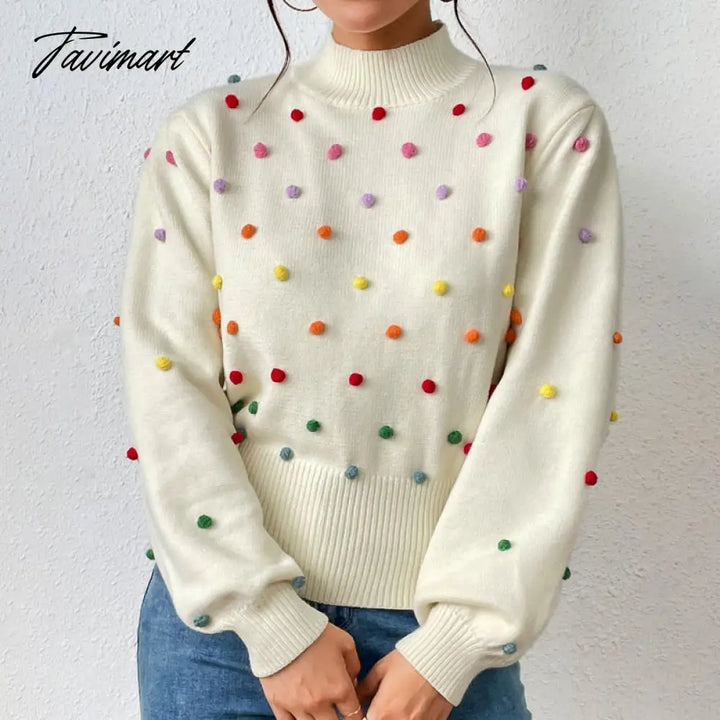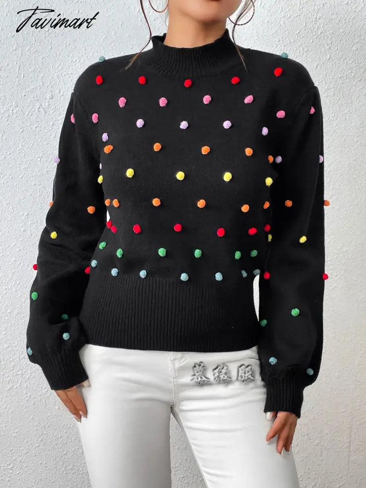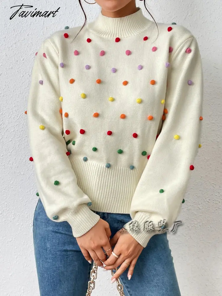 Tavimart Fashion Knitting Women's Sweater Pullovers for Winter Women's Sweater New Mock Neck Beaded Knit Sweater Women's