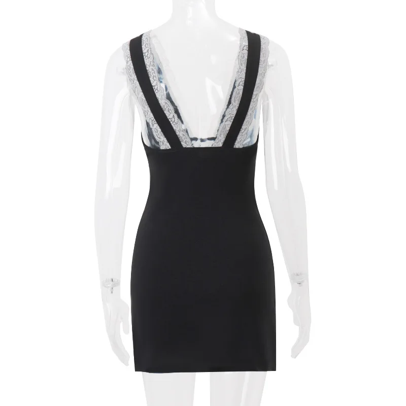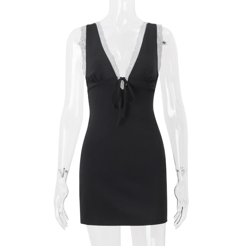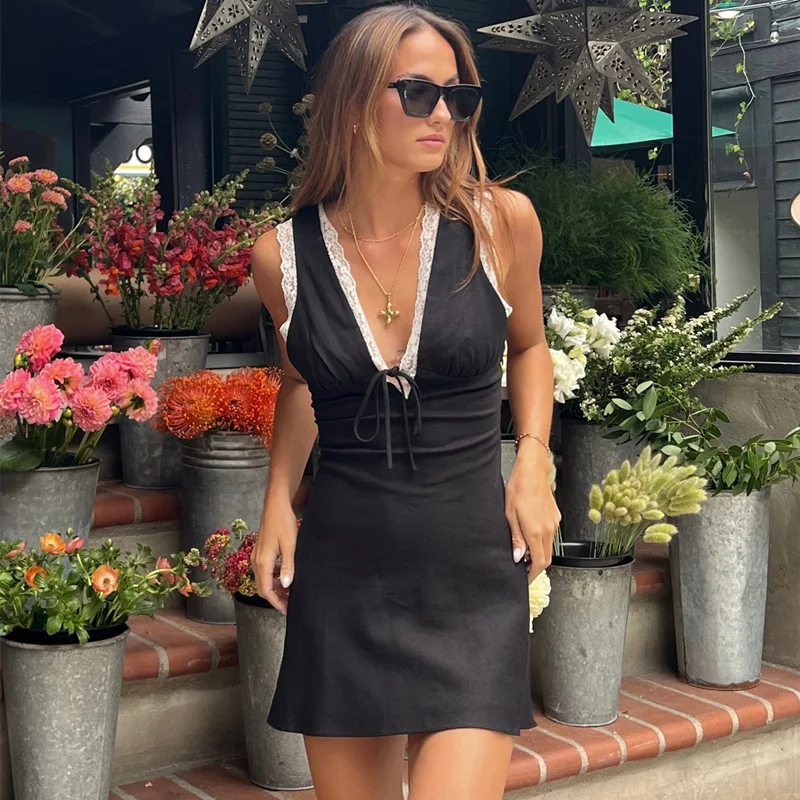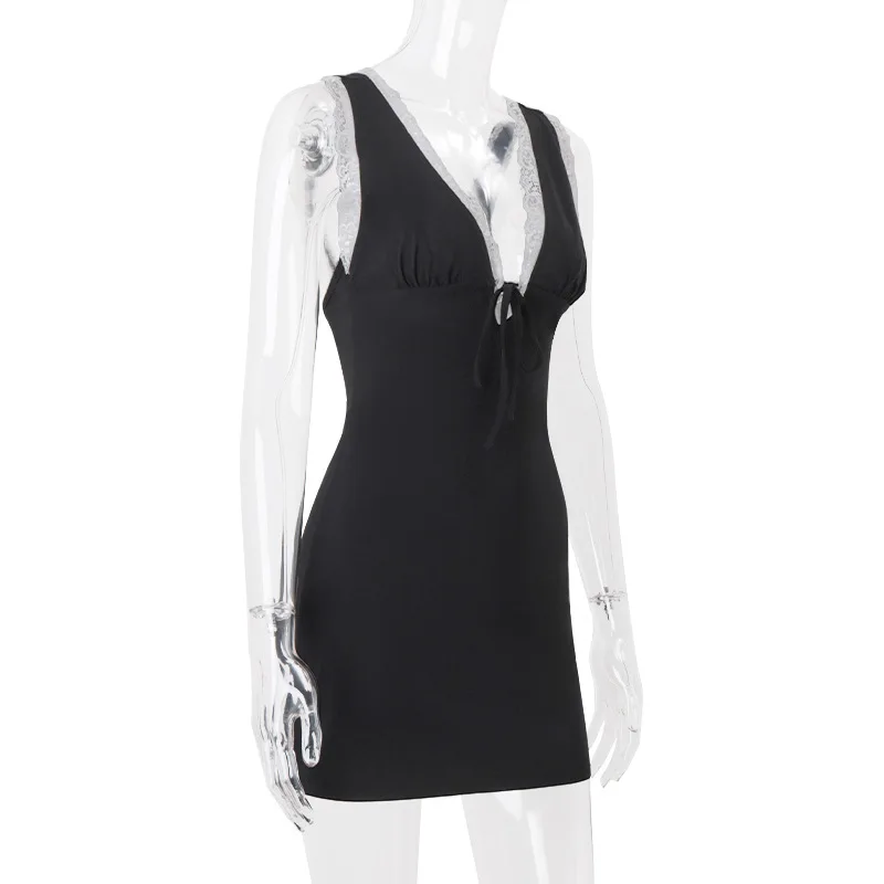 TAVIMART - Fashion Sexy V-Neck Backless Lace Slip Dress For Women Sleeveless Short Club Party Dress Holiday Elegant Outfits Slim Fit