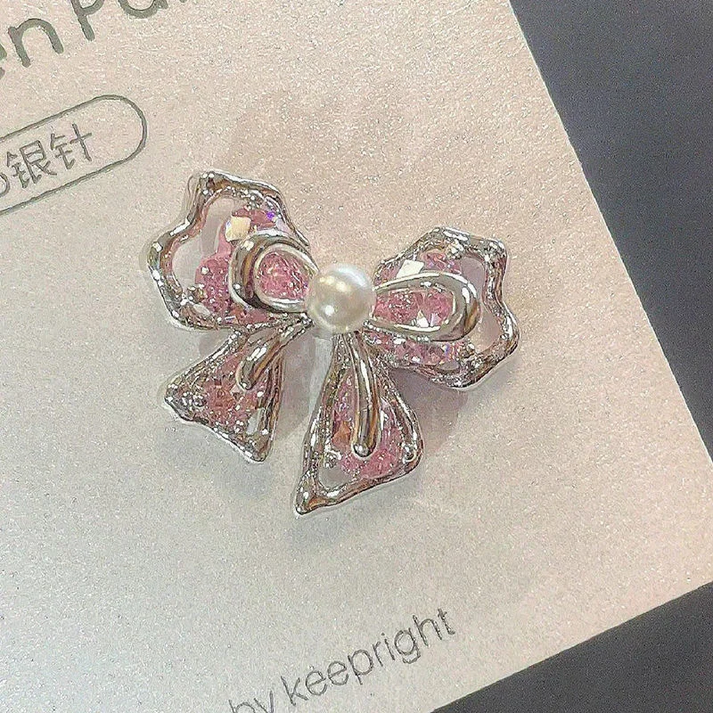 TAVIMART - Fashion Silver Color Ribbon Bow Drop Earrings For Women Girls Korean Style Rhinestone Bow Ear Studs Earrings Wedding Jewelry