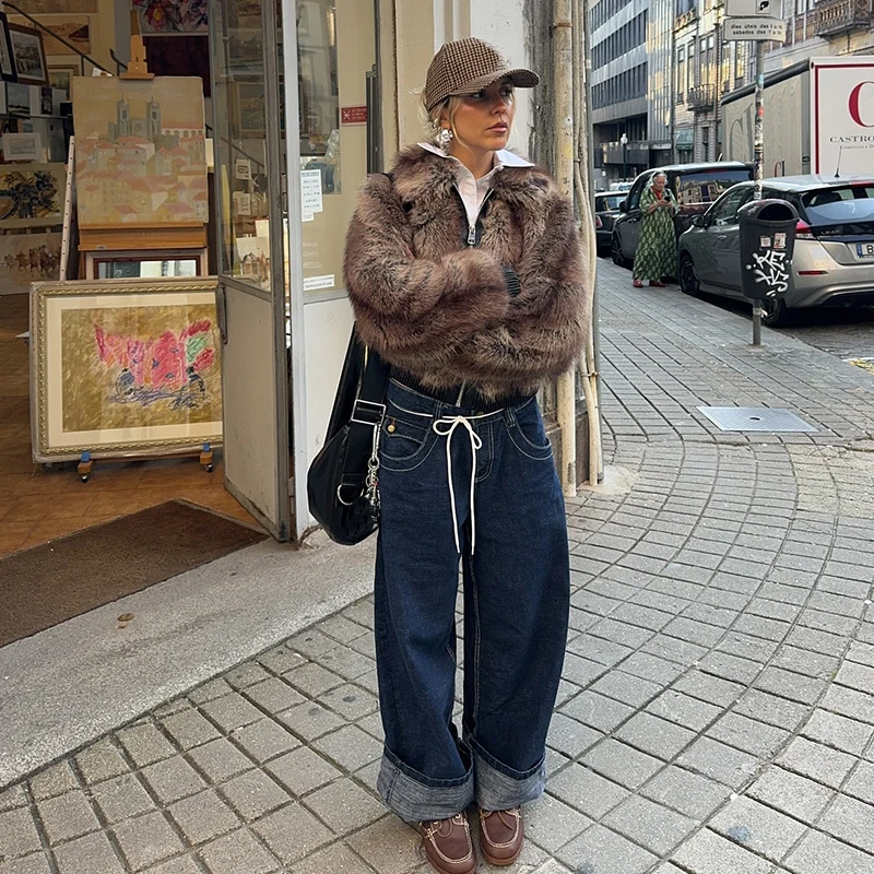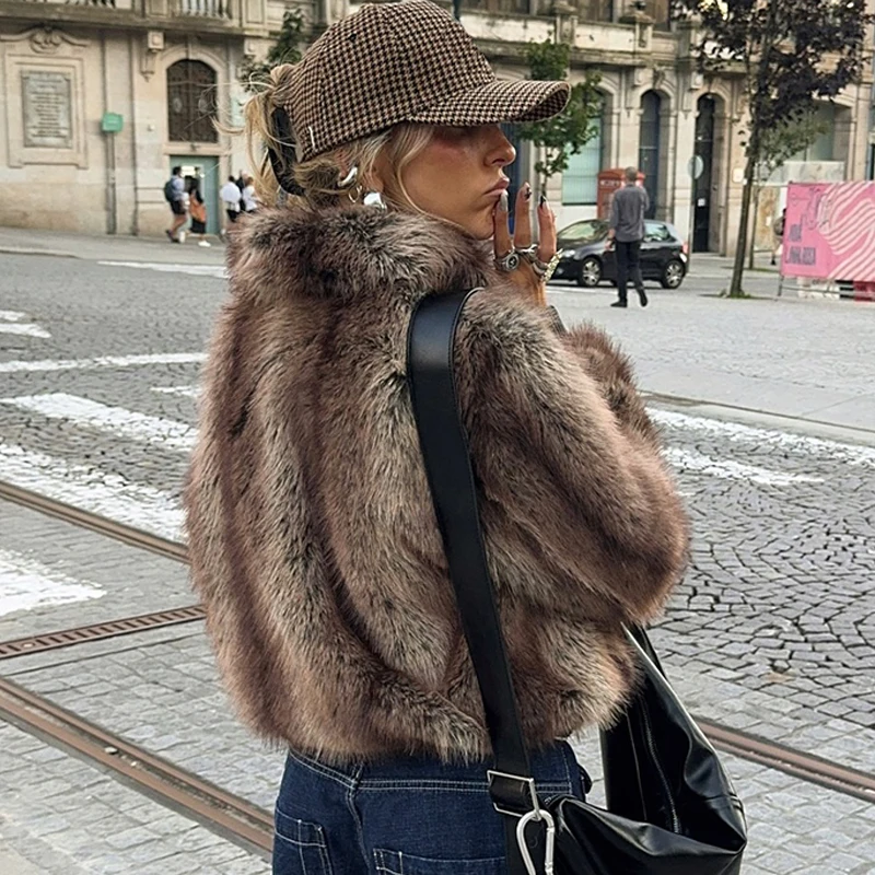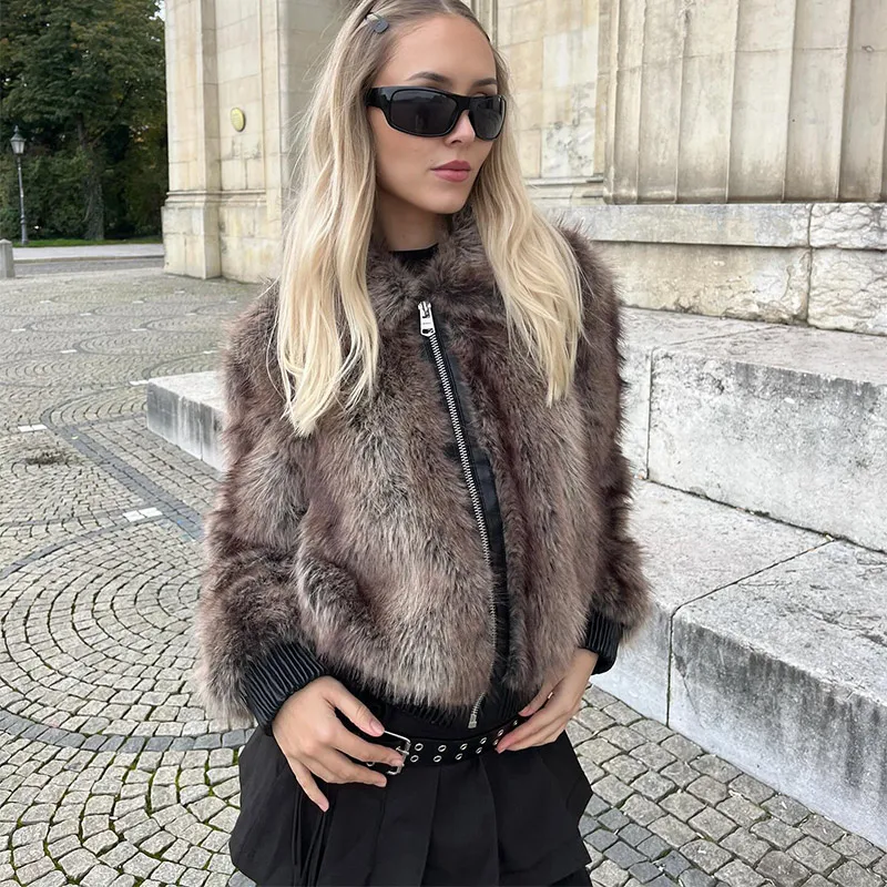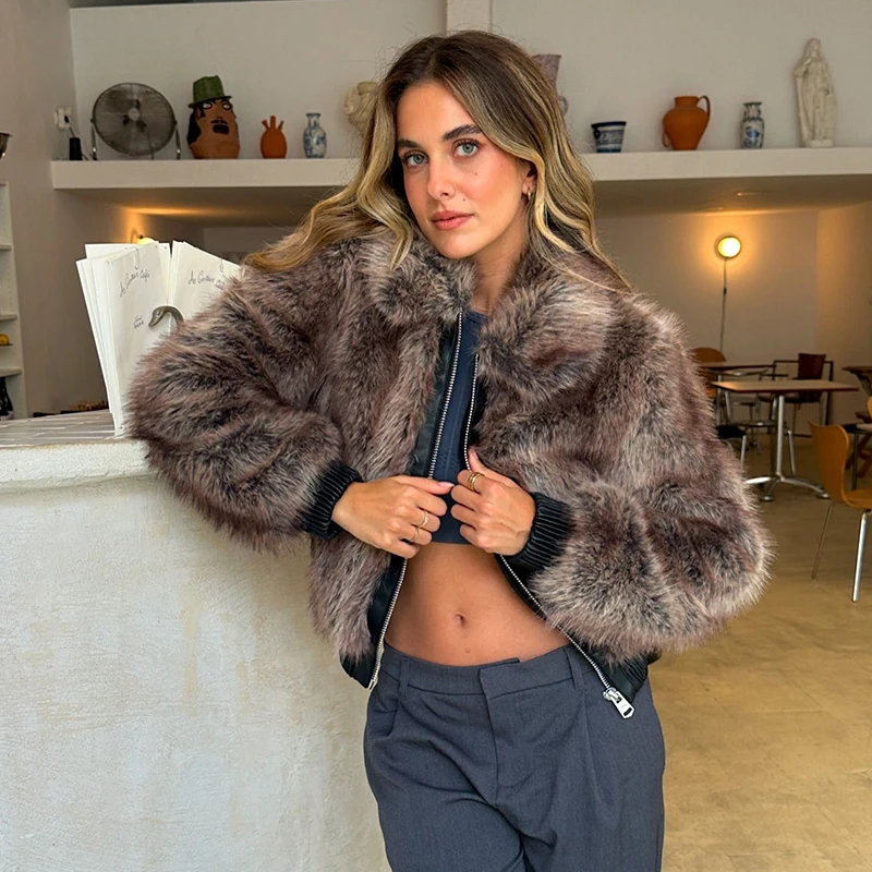TAVIMART - Faux Fur Solid Women Coat Full Sleeve Zipper Female Jacket Autumn Winter Thicken Fashion Vintage Straight Lady Overcoat