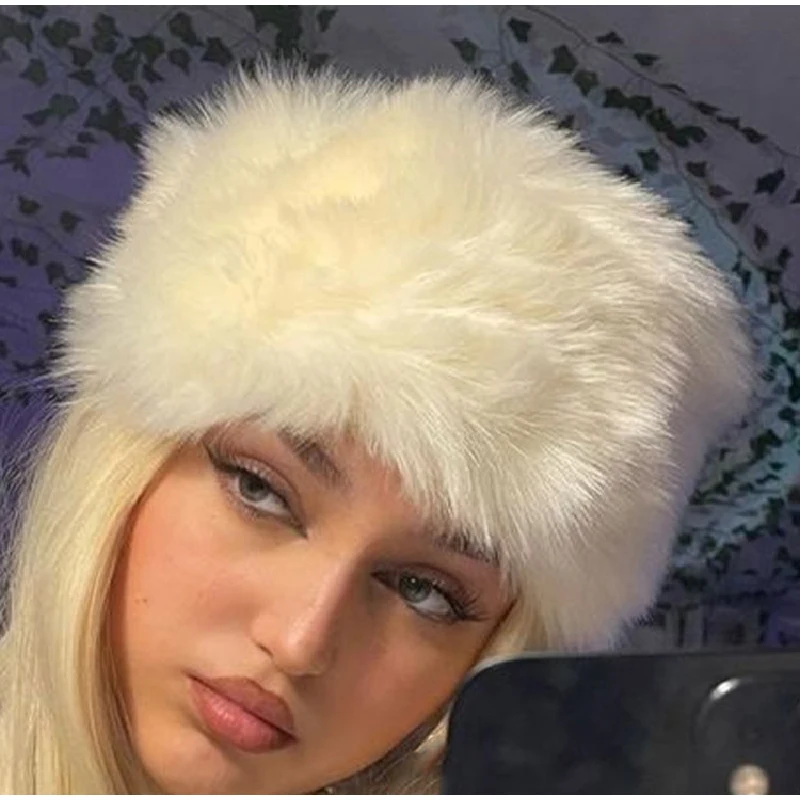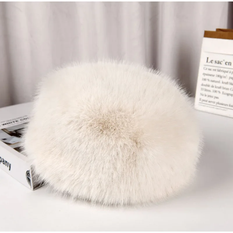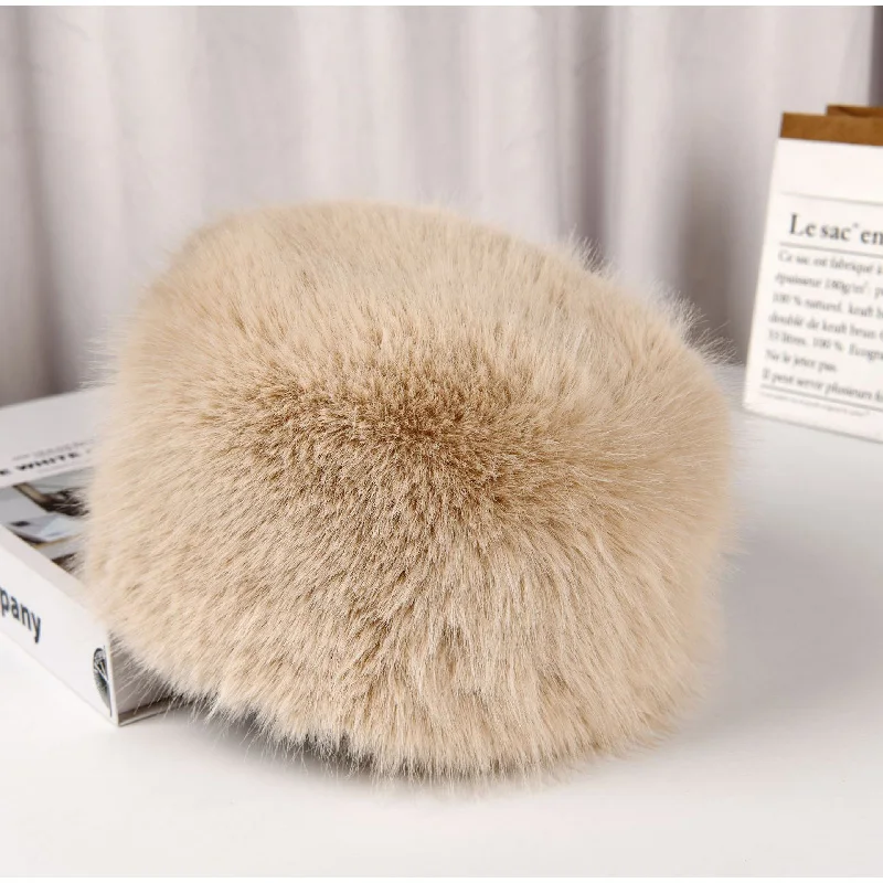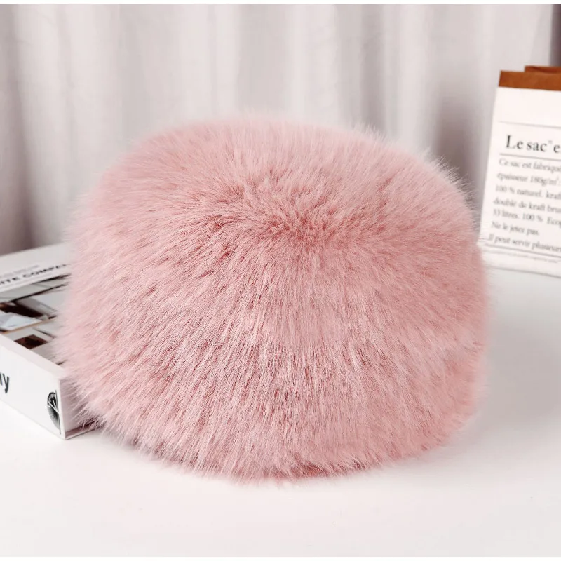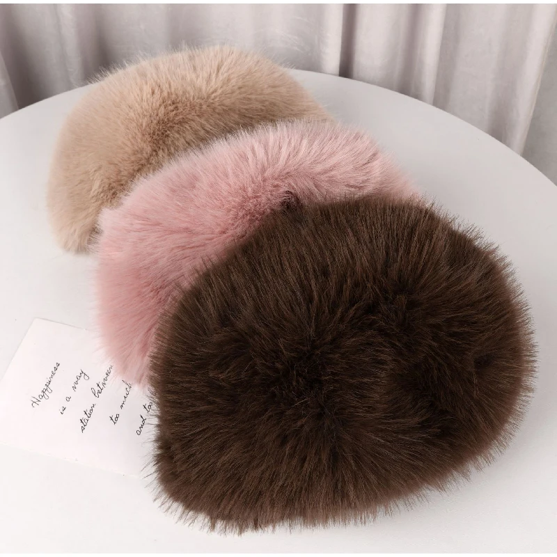 Tavimart Fluffy Faux Fur Bucket Hat Winter Padded Hat Ear Protection Basin Hat Japanese Warm Cold-proof Hat Thicken Fashion Earmuffs Hat