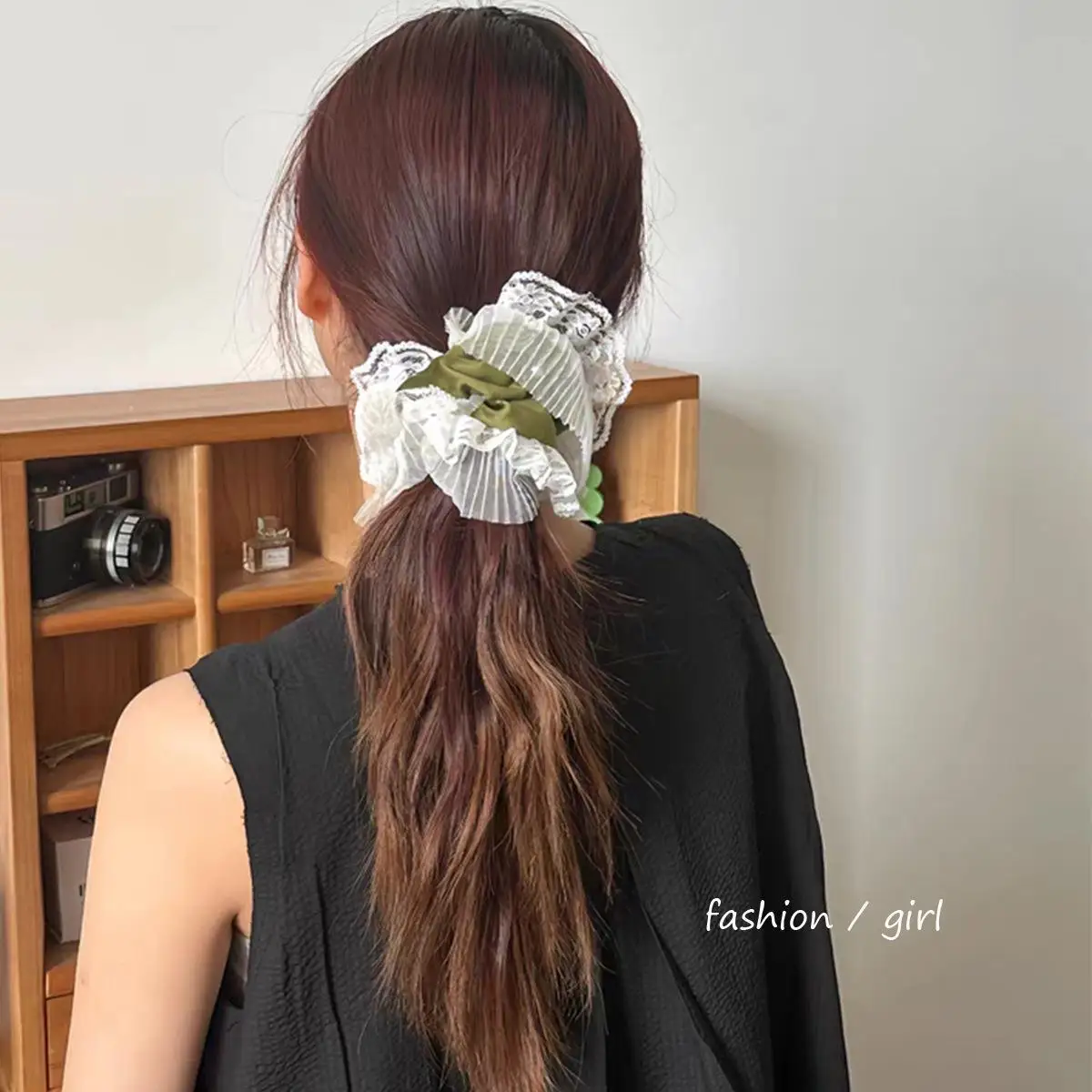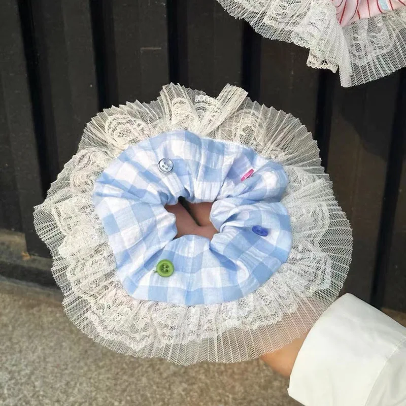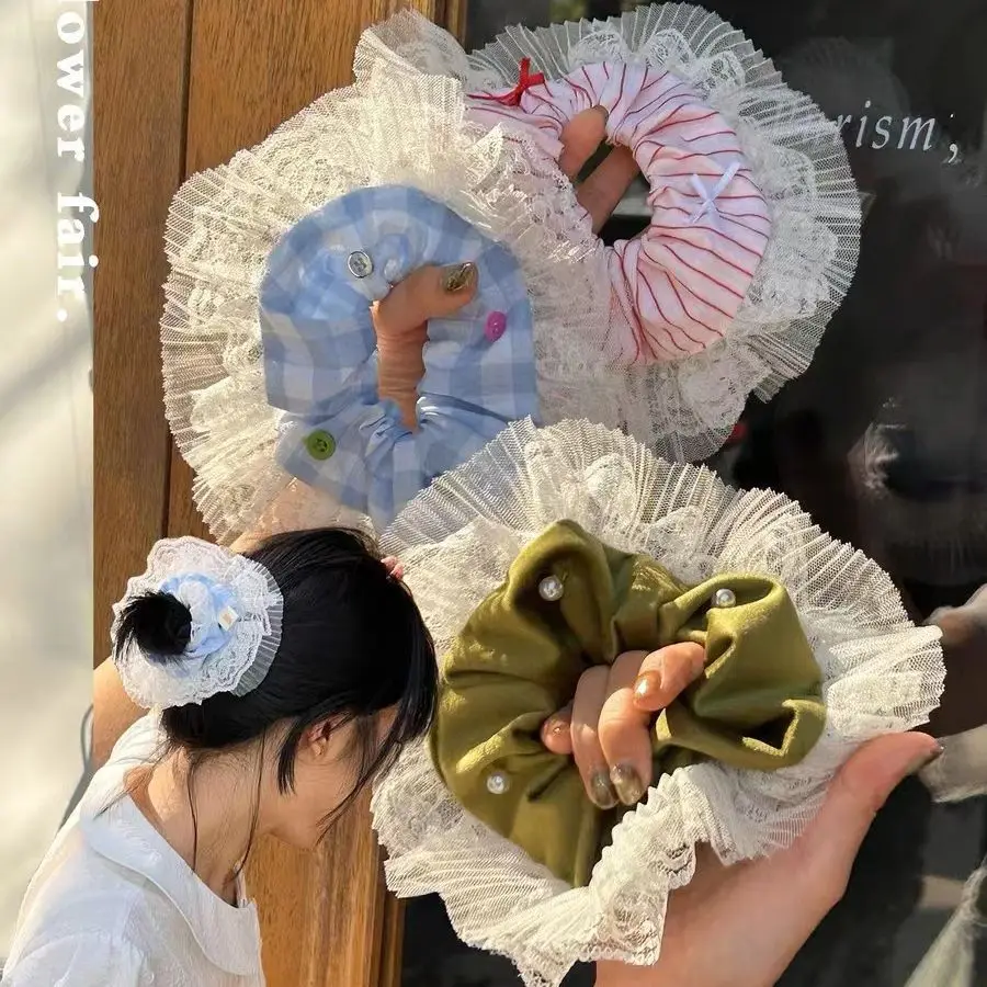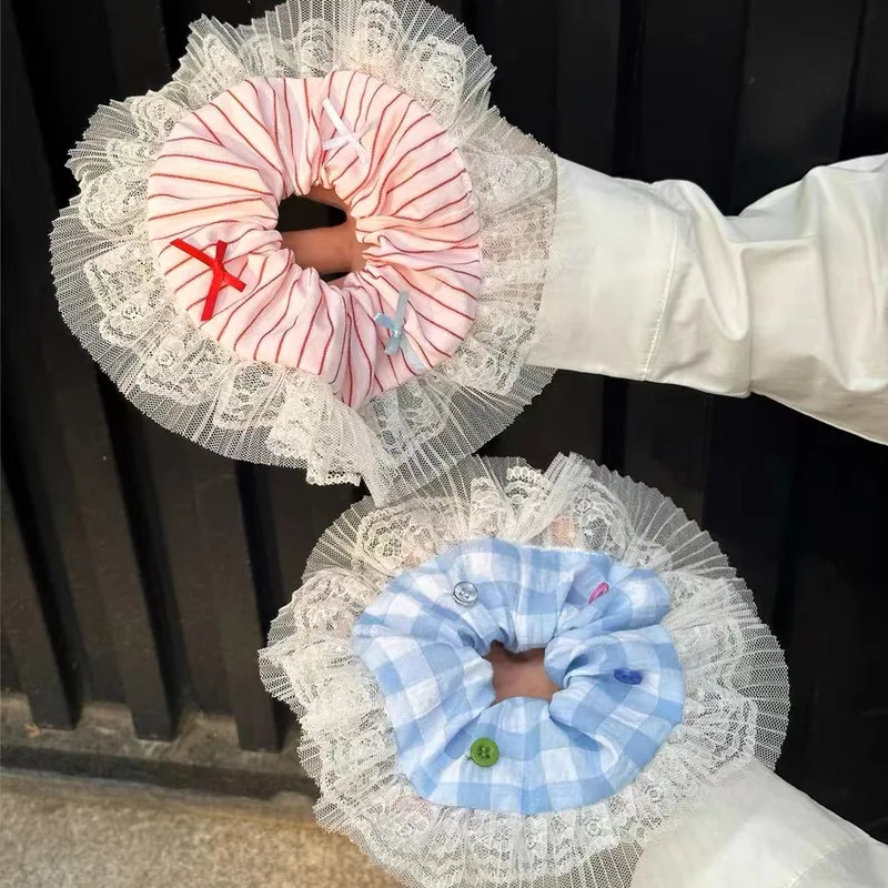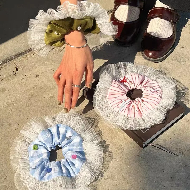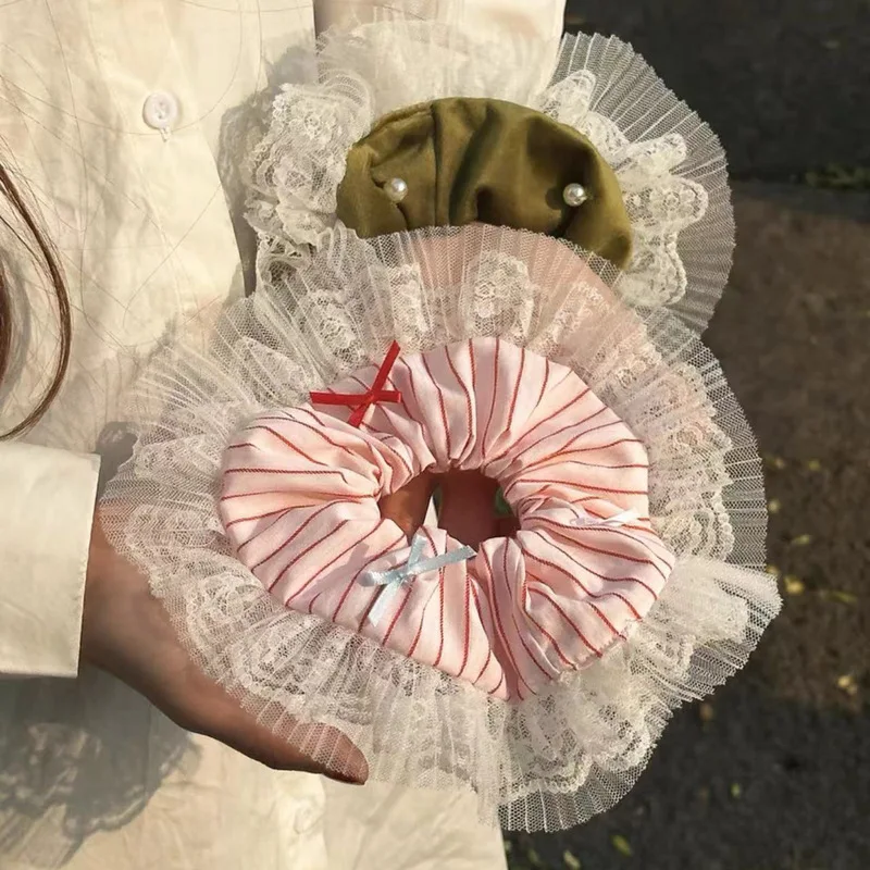 Tavimart French New Lace Large Pink Scrunchies Headband Summer Sweet Elastic Hair Rope Headwear Rubber Band Hair Accessories for Girls
