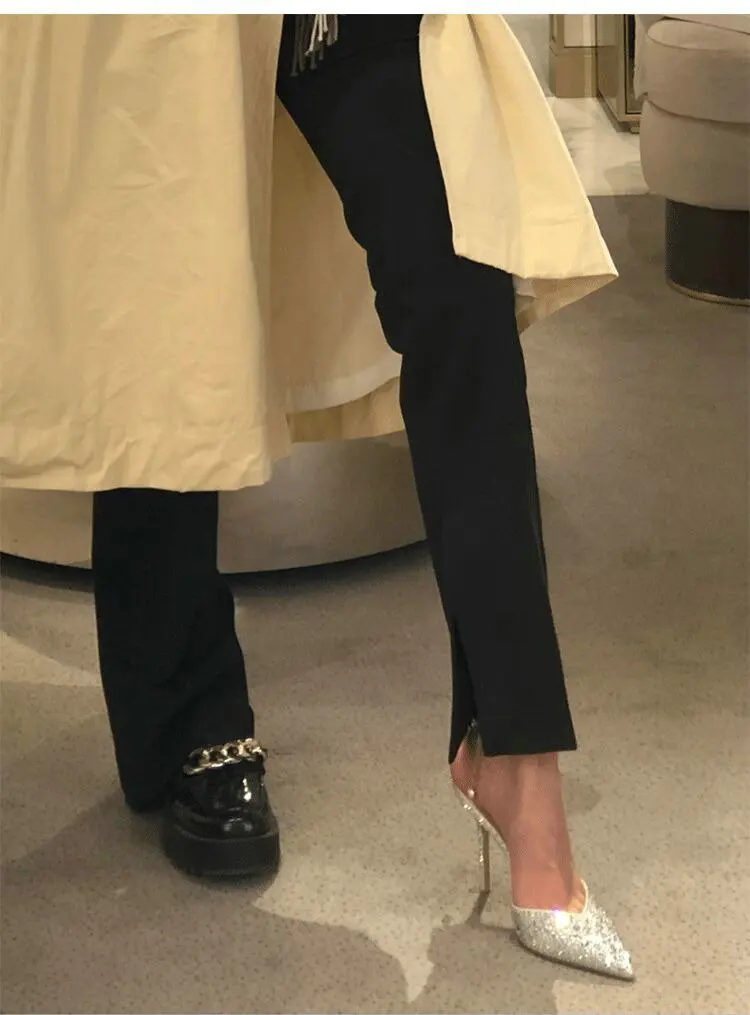 TAVIMART - French Stiletto Heels Pointy one-line Buckle Fairy Single Shoes Celebrity Crystal Wedding Pumps Rhinestone Strappy Sandals