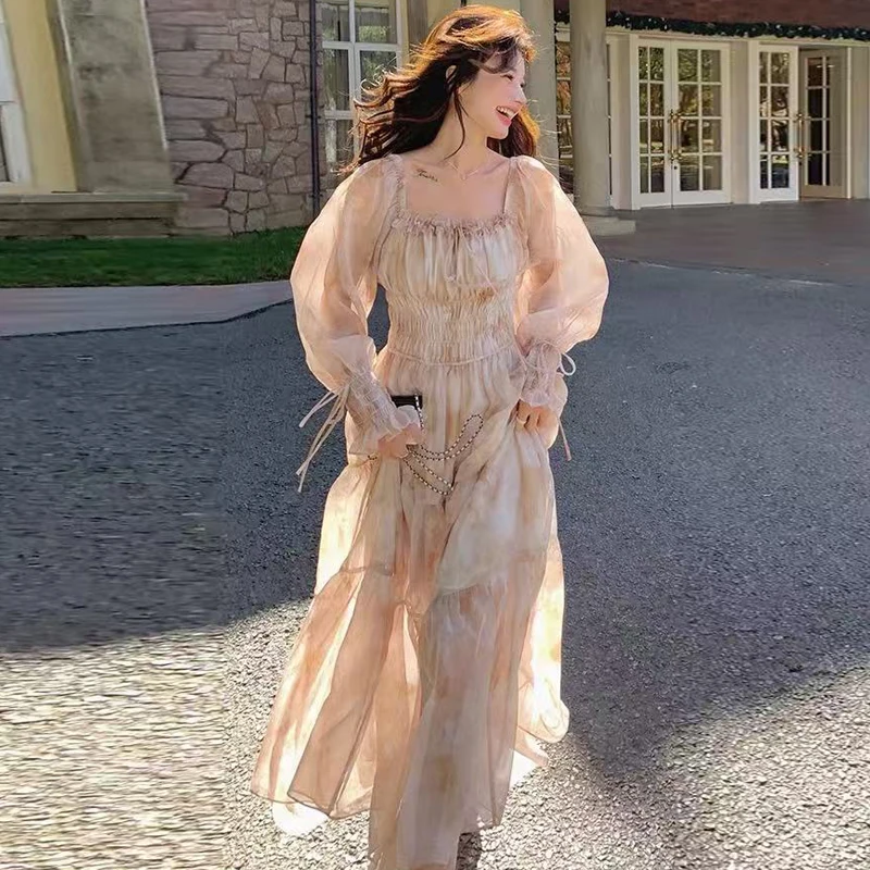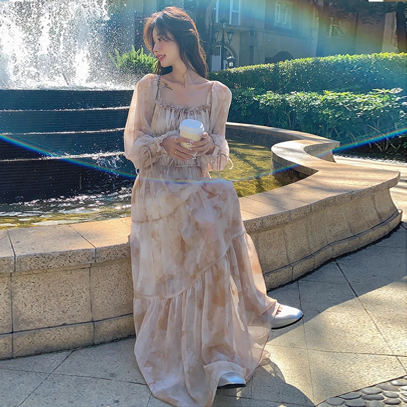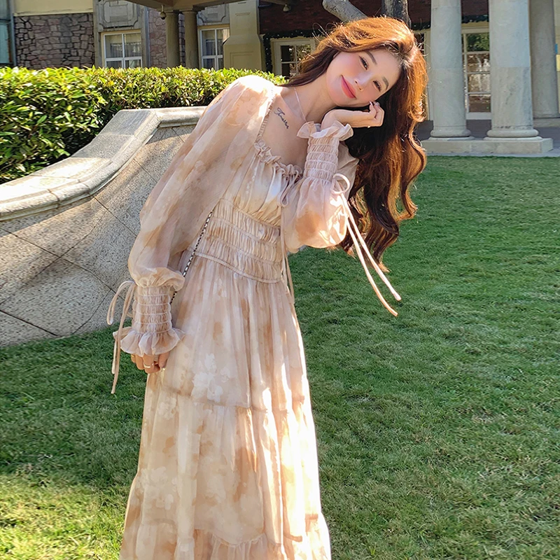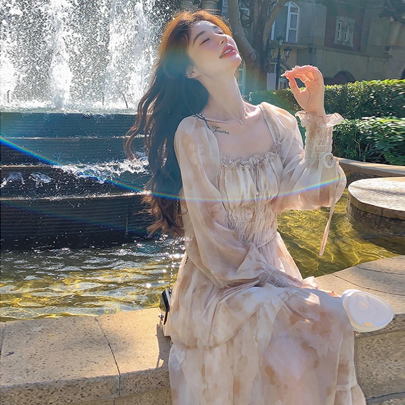 TAVIMART - French Style Women Floral Casual Midi Dress Vintage A-Line Chiffon Party Birthday Clothes Female Elegant Chic Vestidos Spring
