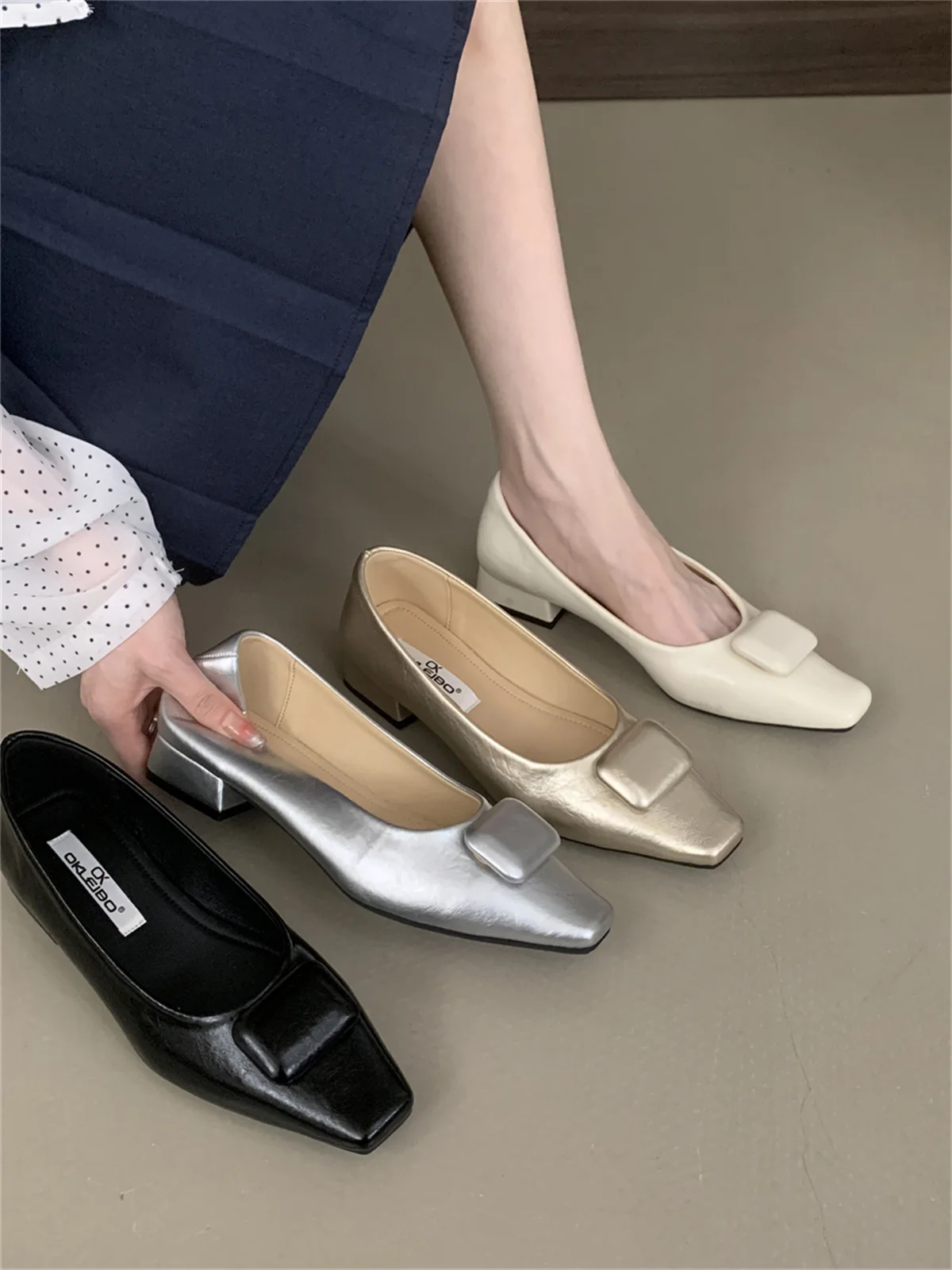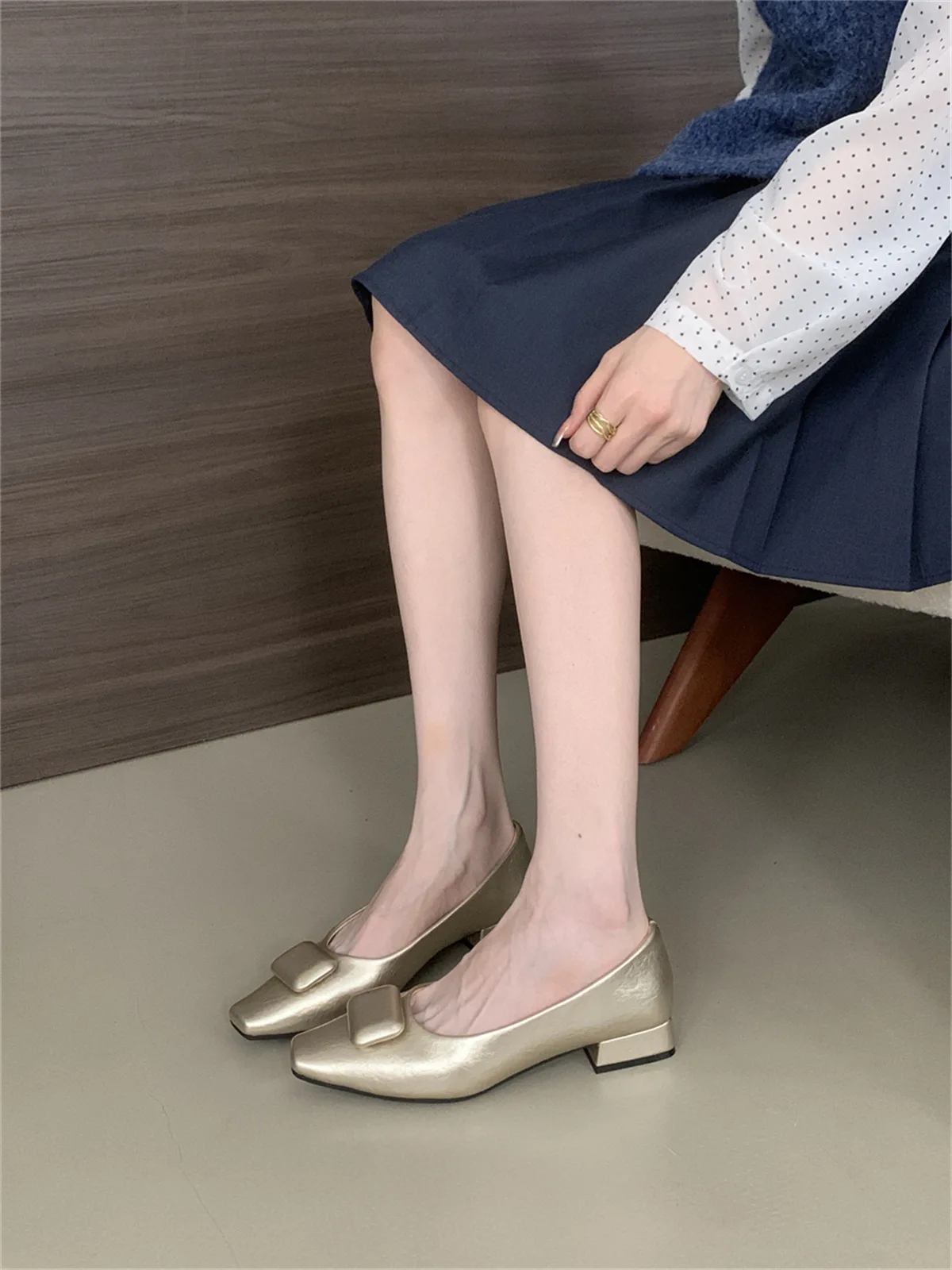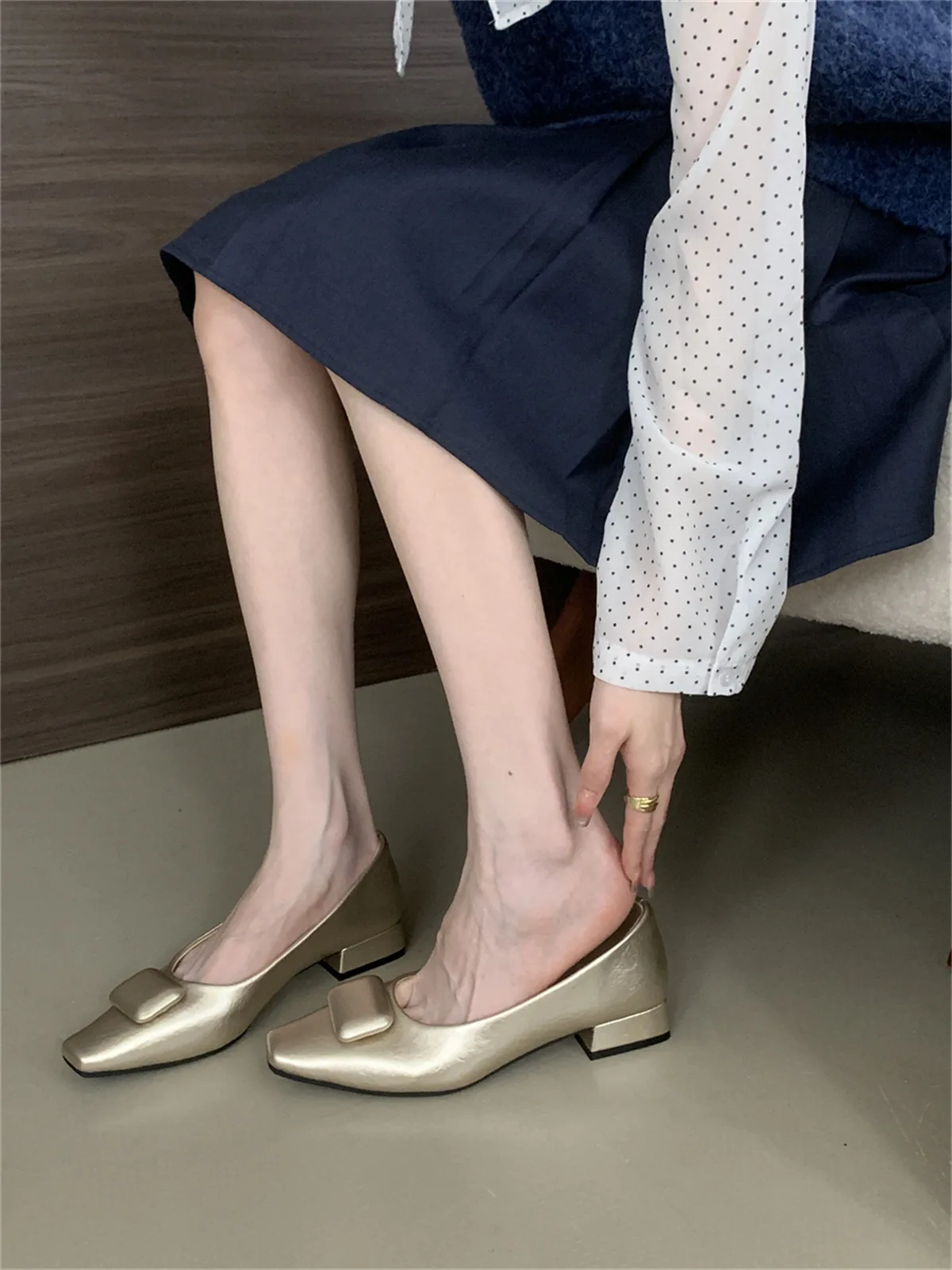 TAVIMART - Golden Shoes Square Toe Buckle Shallow Mouth Female Footwear Casual Sneaker Elegant 2025 Fashion Women's Yellow New Dress Comfor