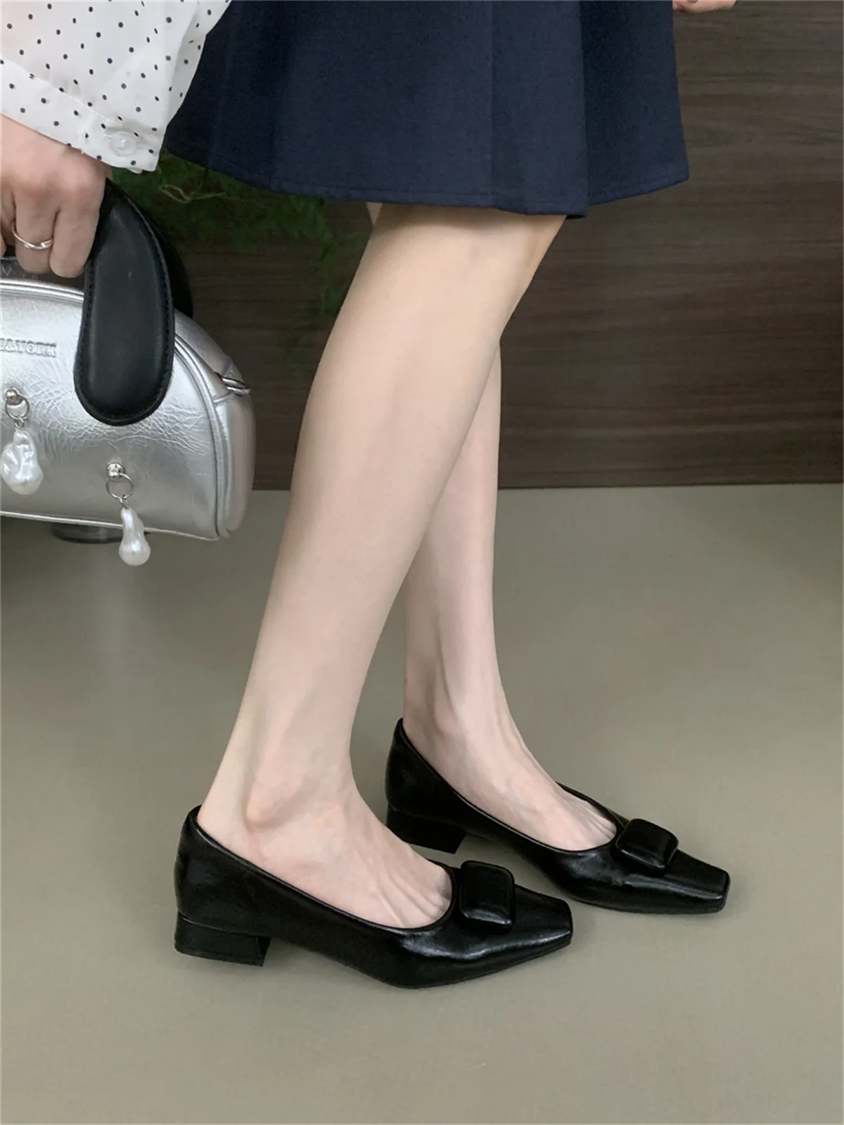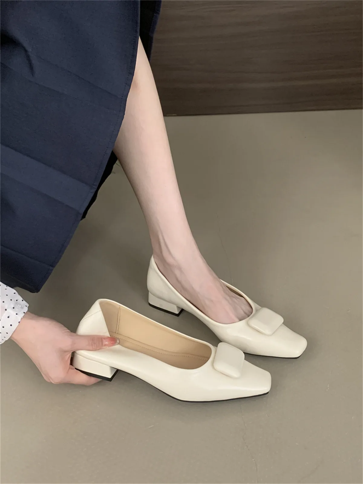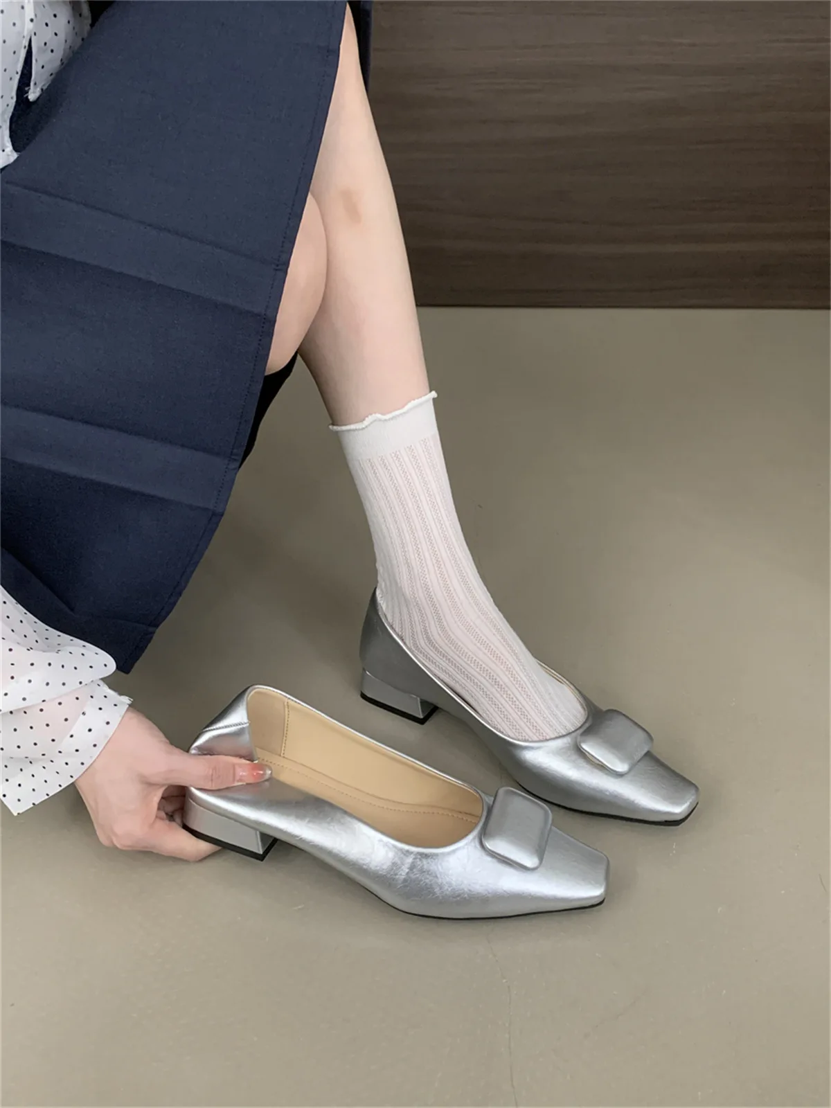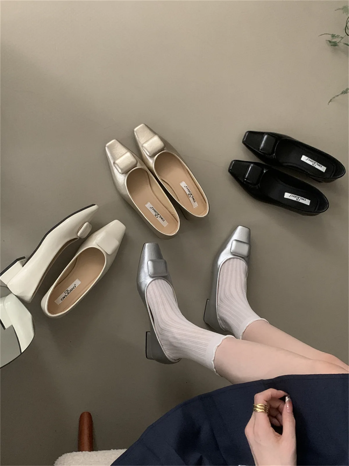 TAVIMART - Golden Shoes Square Toe Buckle Shallow Mouth Female Footwear Casual Sneaker Elegant 2025 Fashion Women's Yellow New Dress Comfor