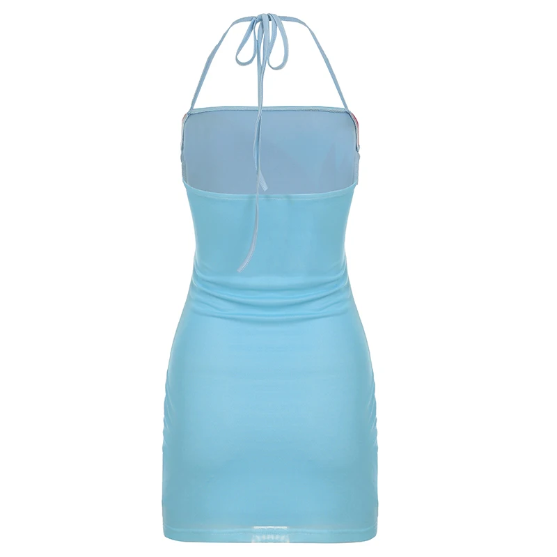 TAVIMART - Holiday Style Floral Print Halter Mini Dress Summer Women Sexy Backless Slim Fit Bodycon Short Dress Boho Chic Outfit