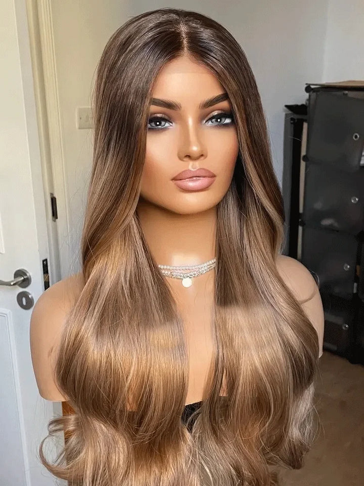 TAVIMART - Honey Blonde Lace Front Wig Heat Resistant Premium Synthetic Lace Front Wig Brown Blonde Mix Wig For Woman Long Wavy