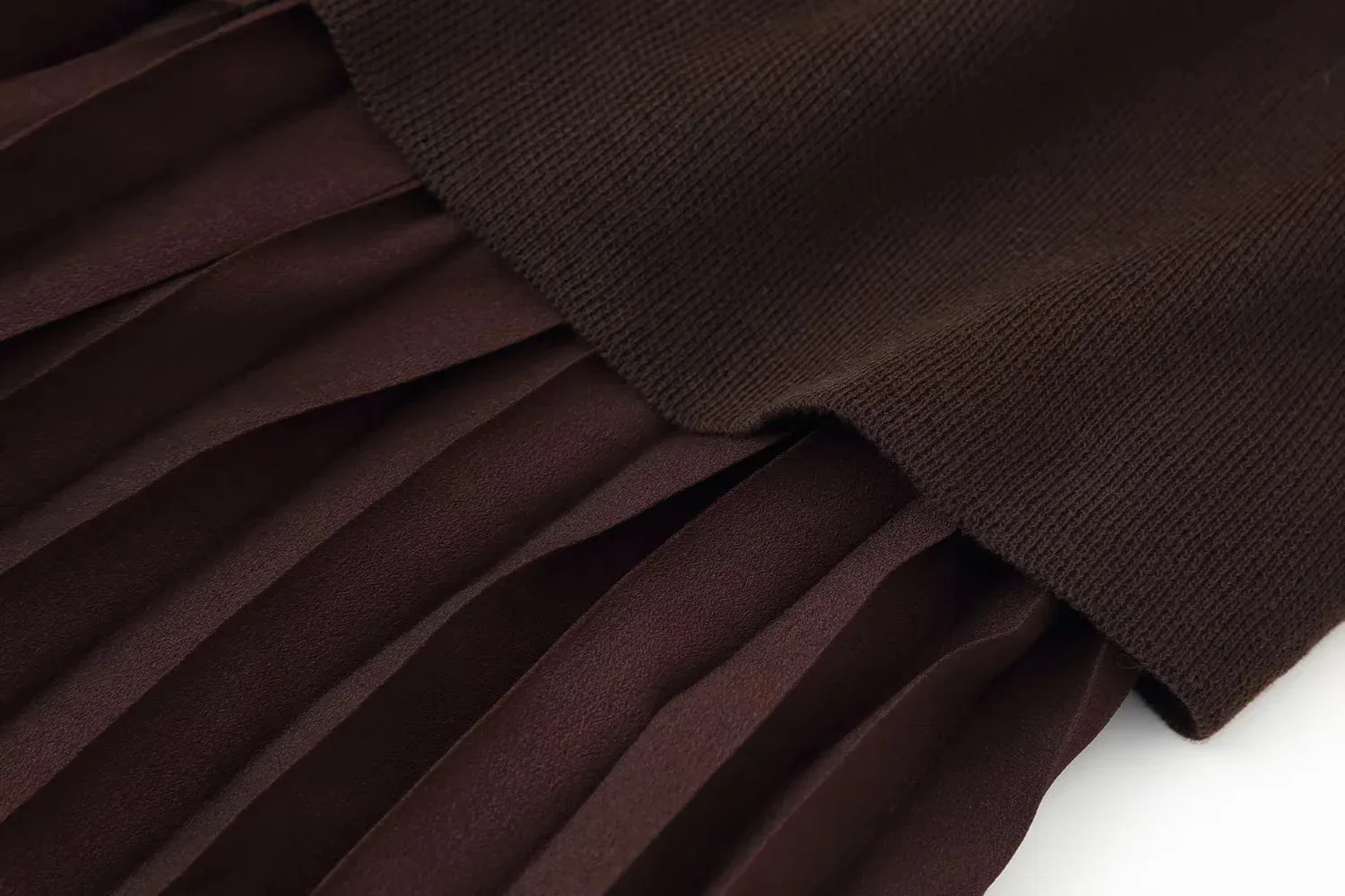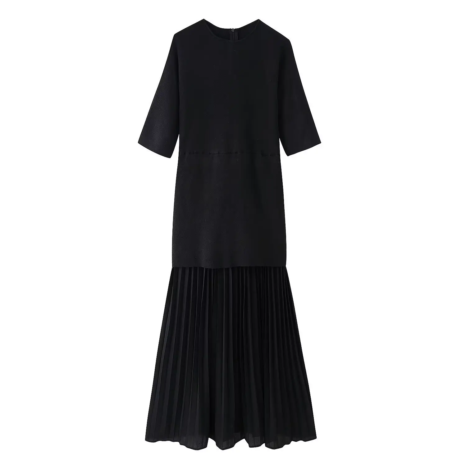 TAVIMART - Knitted Patchwork Dresses Women 2025 Fashion Round Neck Pleated Slim Fit Robes Female Summer Casual Streetwear Long Vestidos