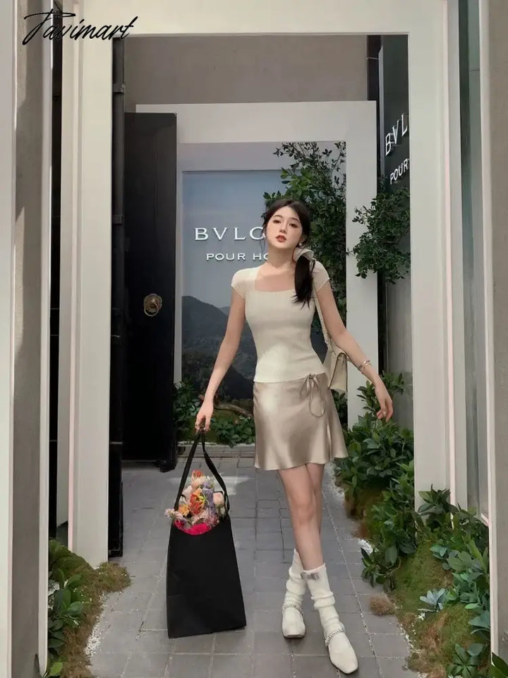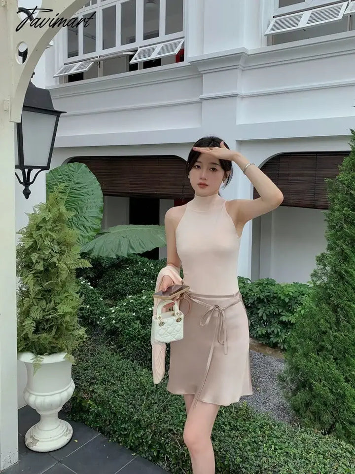 TAVIMART - Korean Acetate A-line Skirts Women Y2k Fashion Loose Lace-up High Waist Summer Miniskirt Streetwear Causal Mujer Bottoms