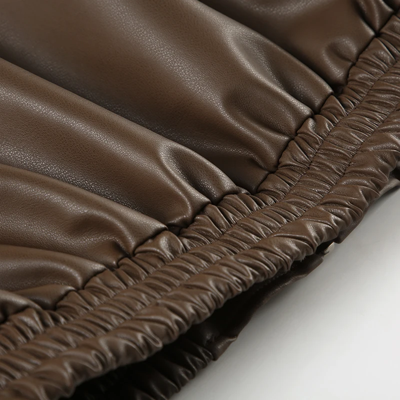 TAVIMART - Korean Fashion Brown PU Jacket Y2K Vintage Autumn Casual Faux Leather Zipper Coat Harajuku Streetwear Outwear Lady