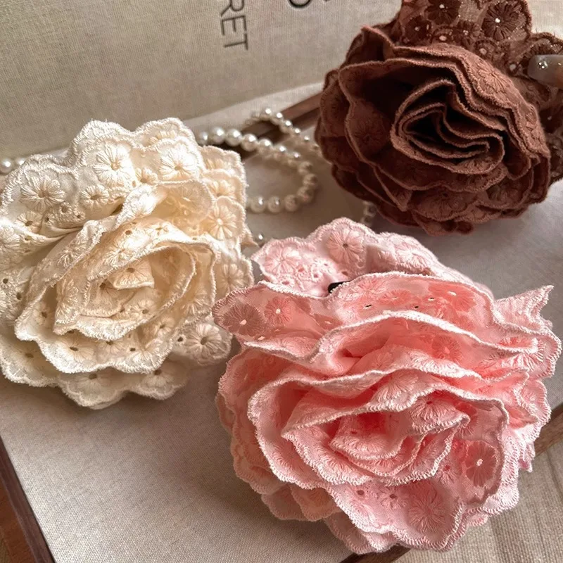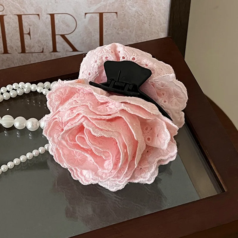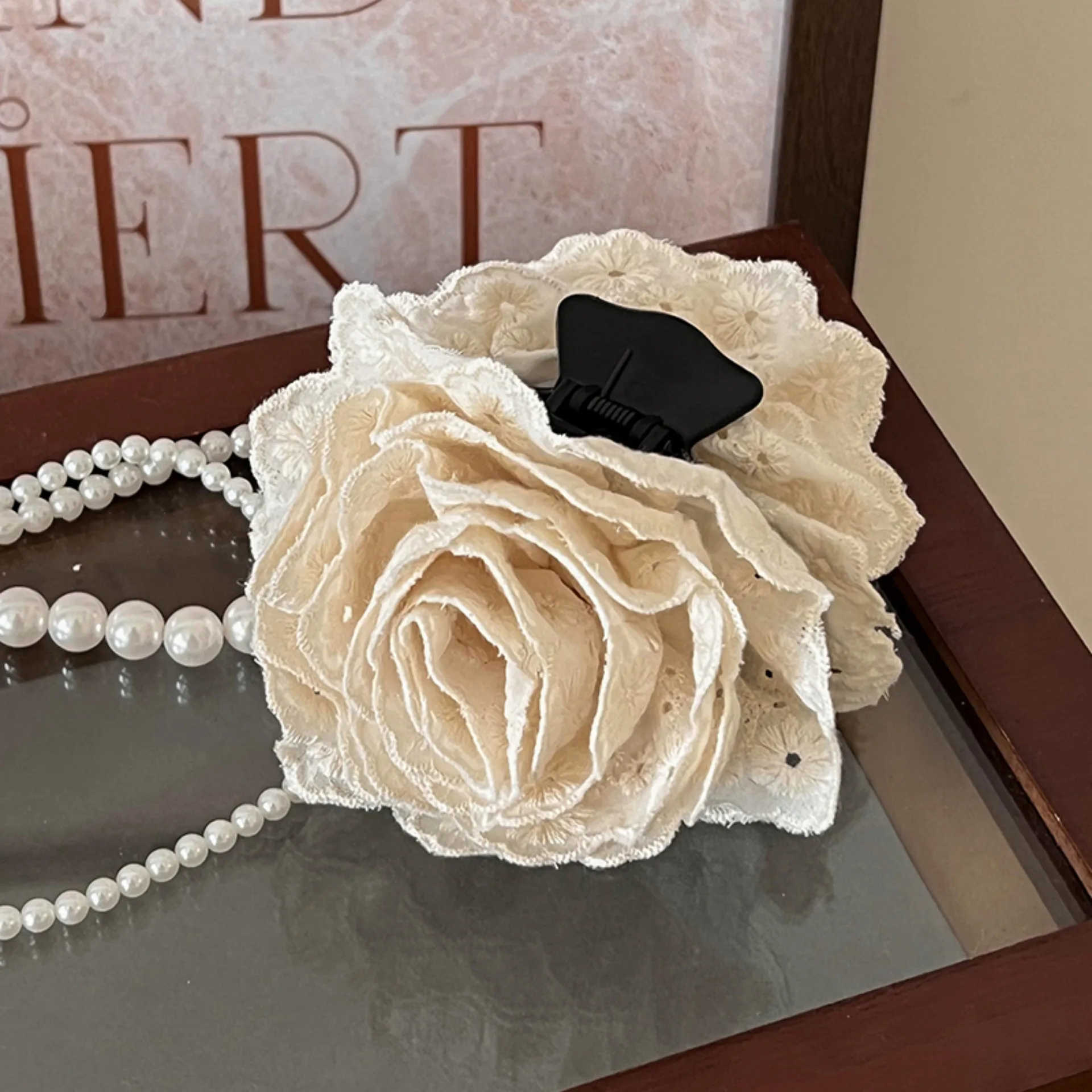 TAVIMART - Lace Hair Claw Clip Women Girl Rose Flower Hair Claws Chic Barrettes Claw Crab Hairpins Hair Accessories Women Ponytail Holder