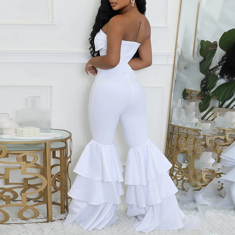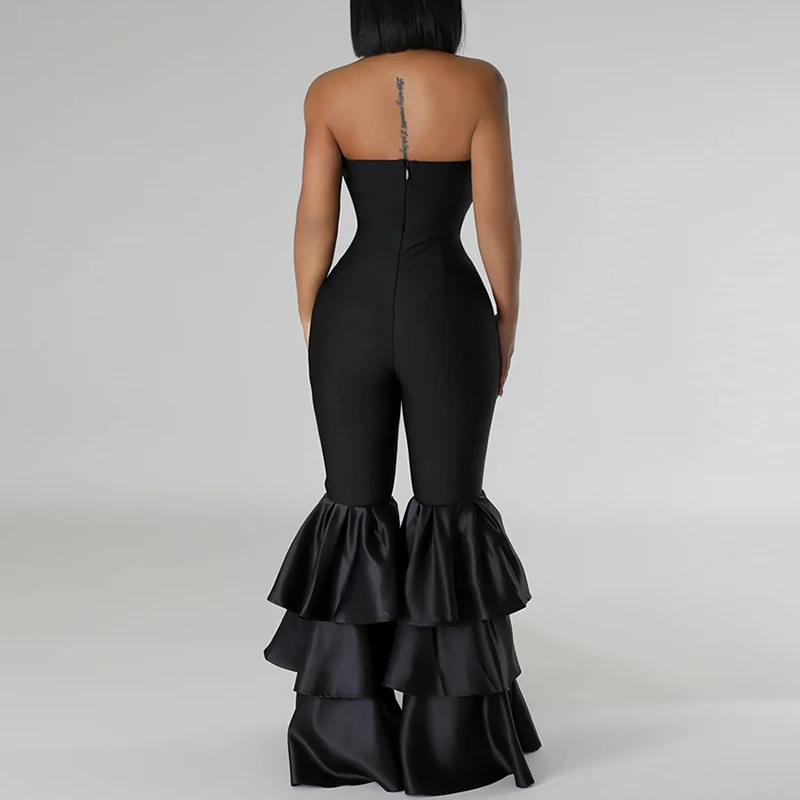 TAVIMART - Lady Sexy Strapless Solid Color High Waist Jumpsuits Office Elegant Ruffle Slim Romper Fashion Sleeveless Flare Pants Playsuit