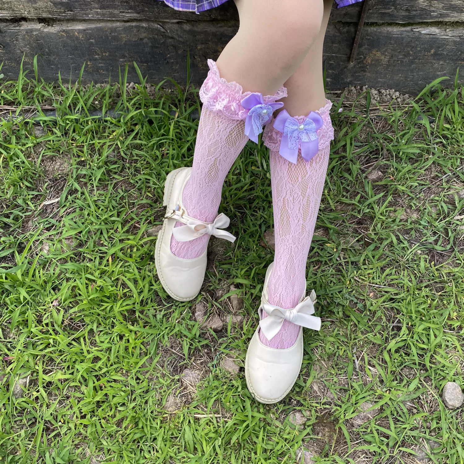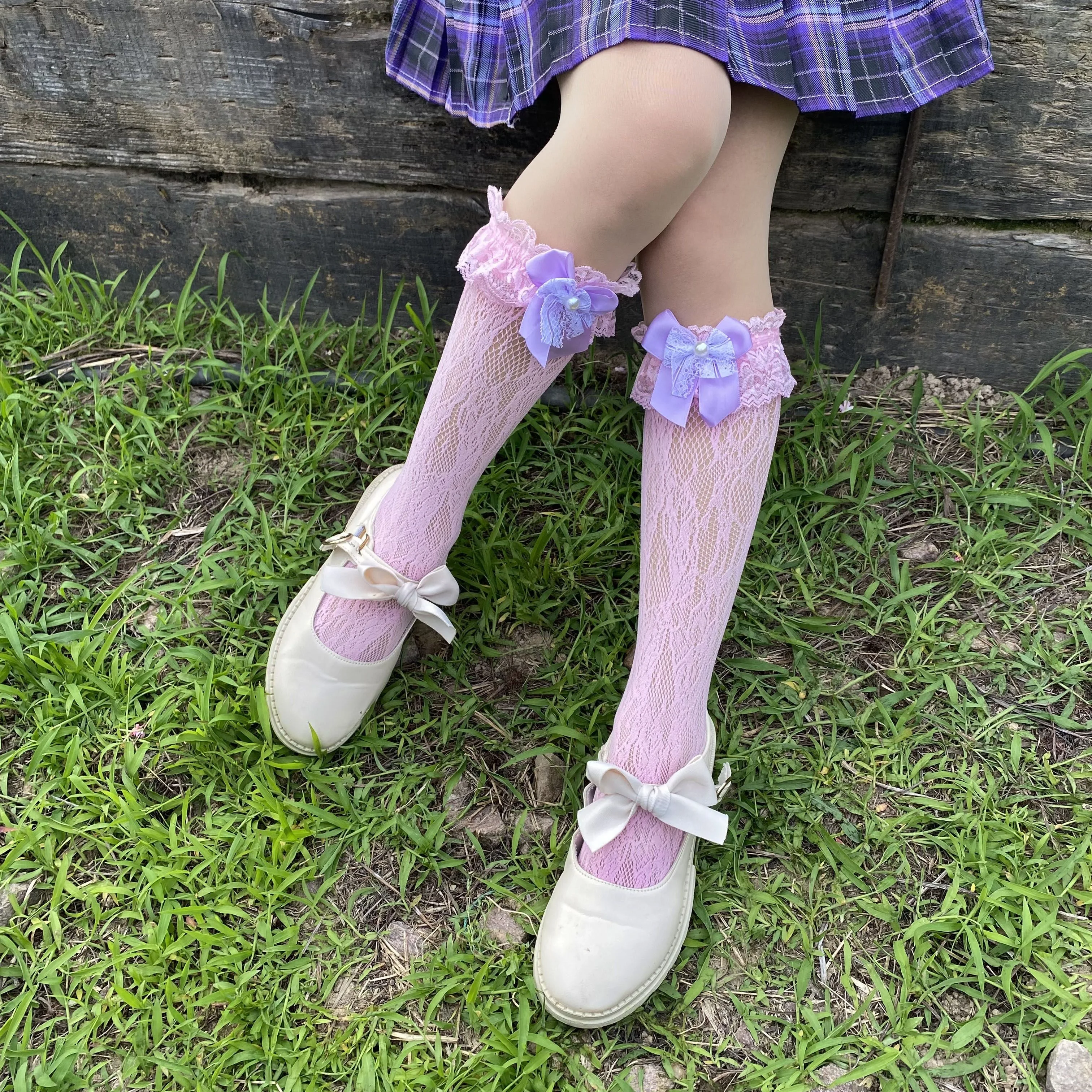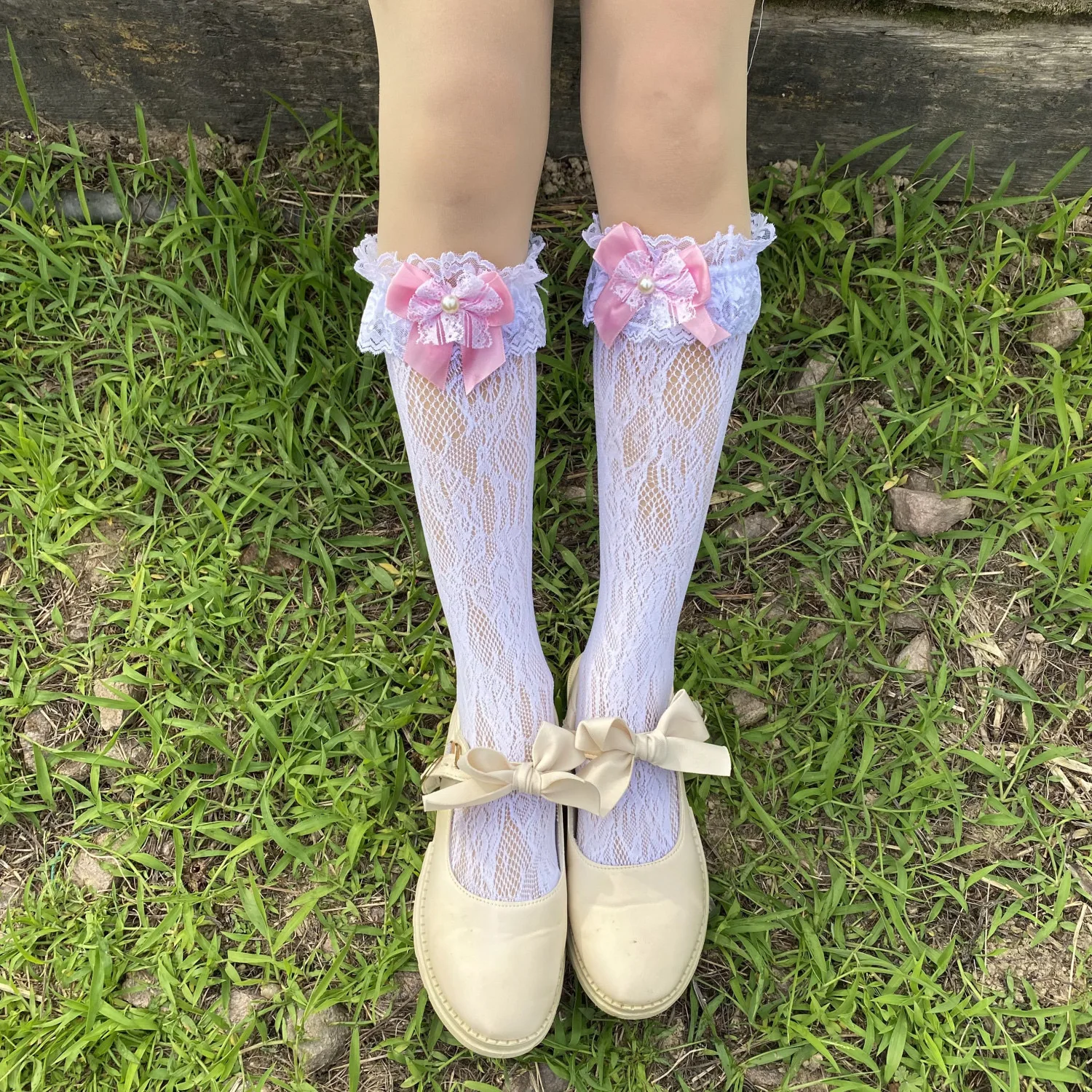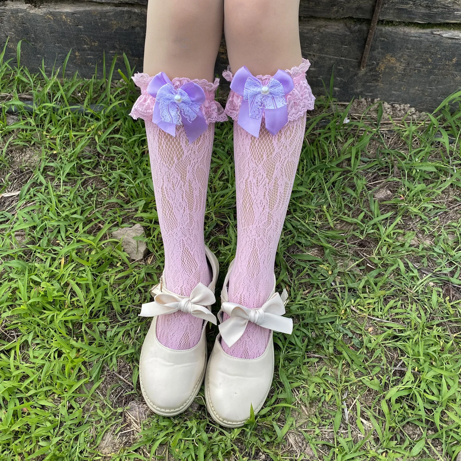 TAVIMART - lolita stocking bow fishnet dance socks lace Socks Mid length Socks