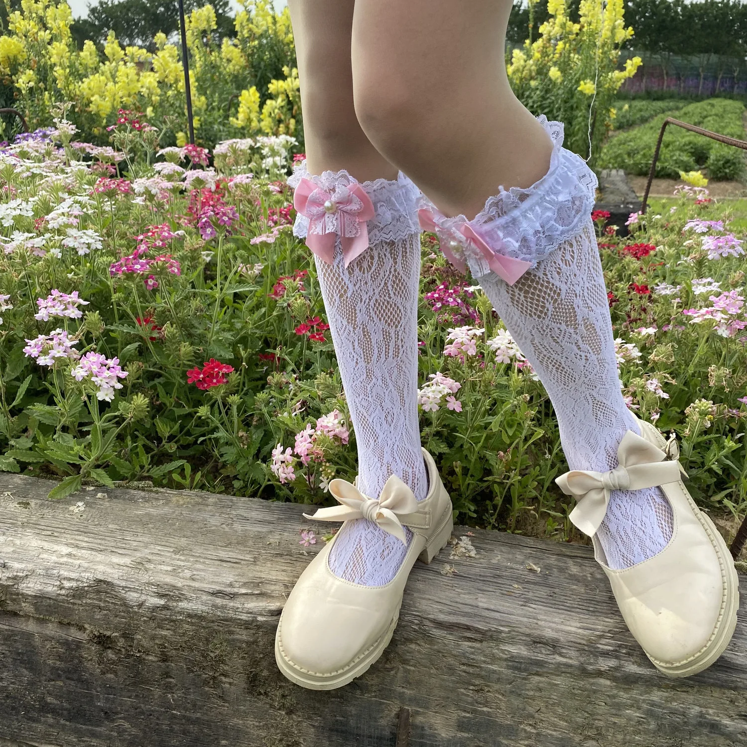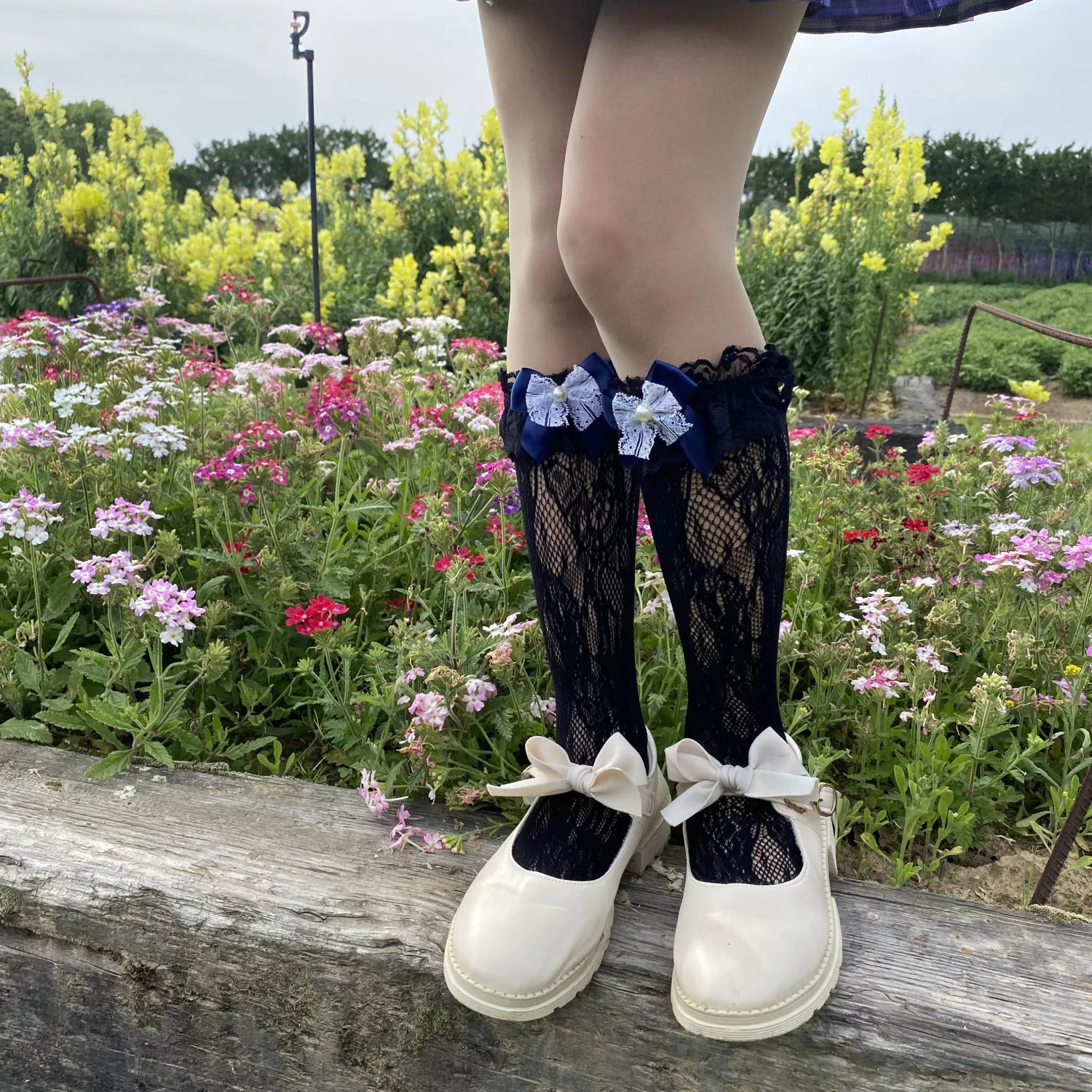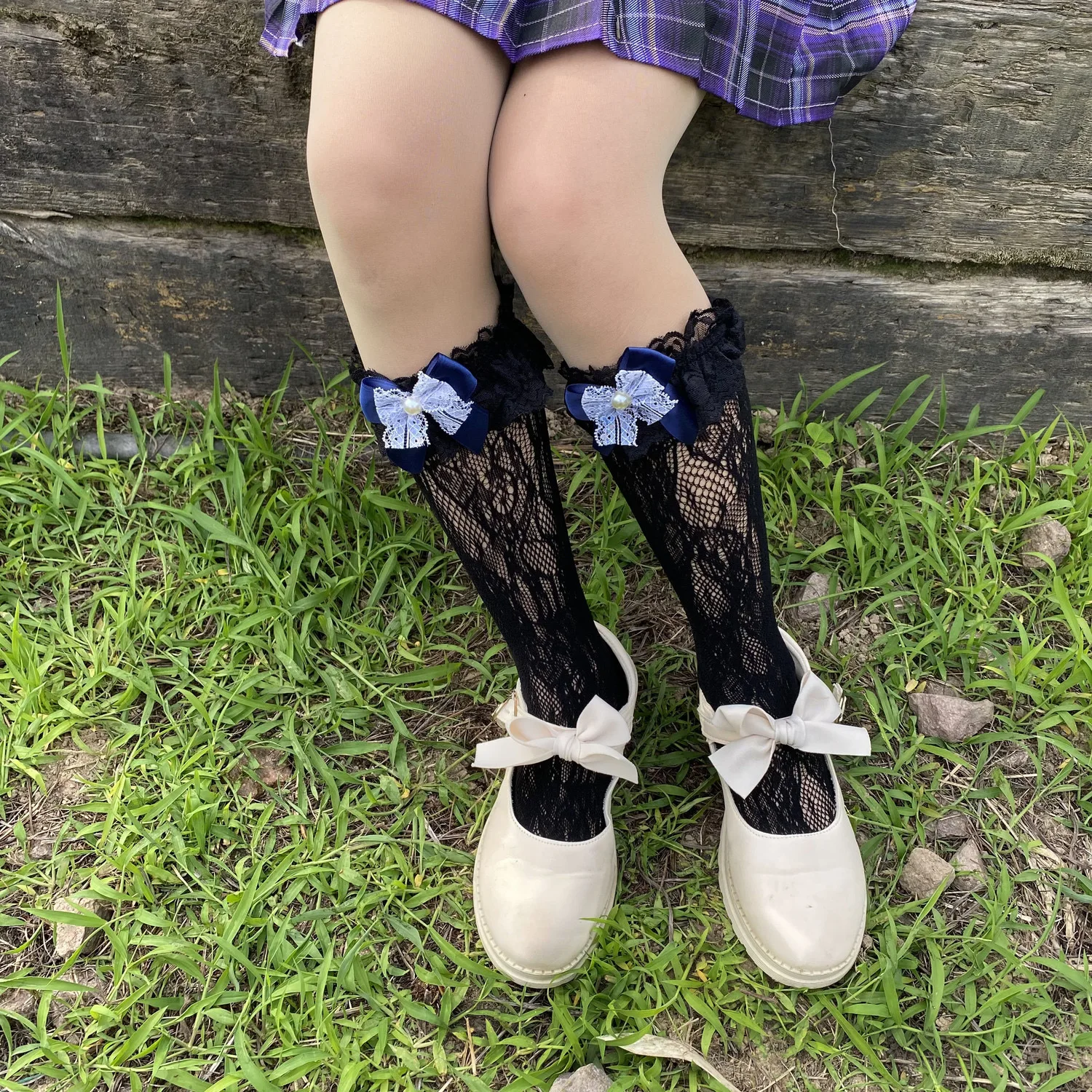 TAVIMART - lolita stocking bow fishnet dance socks lace Socks Mid length Socks