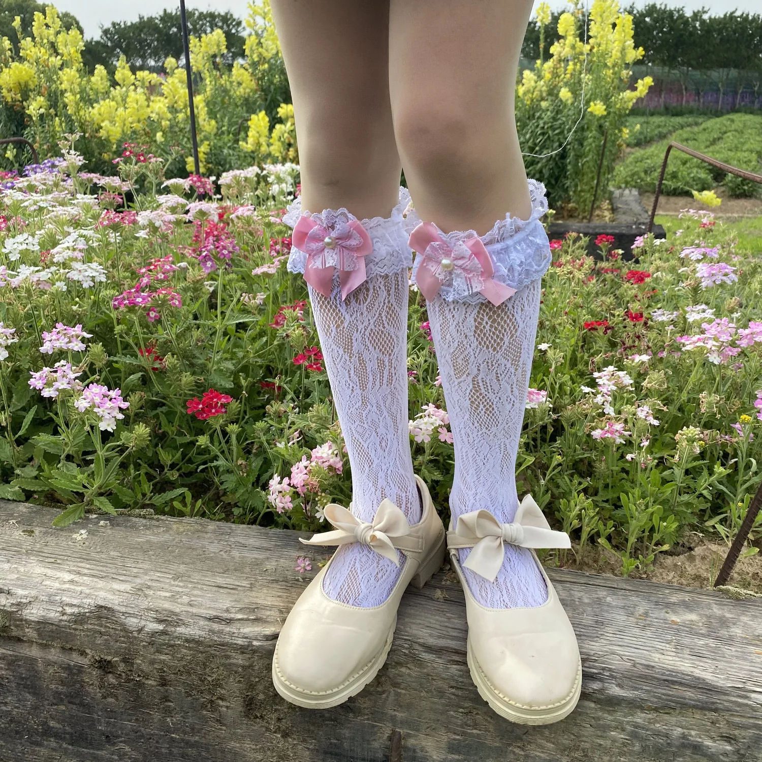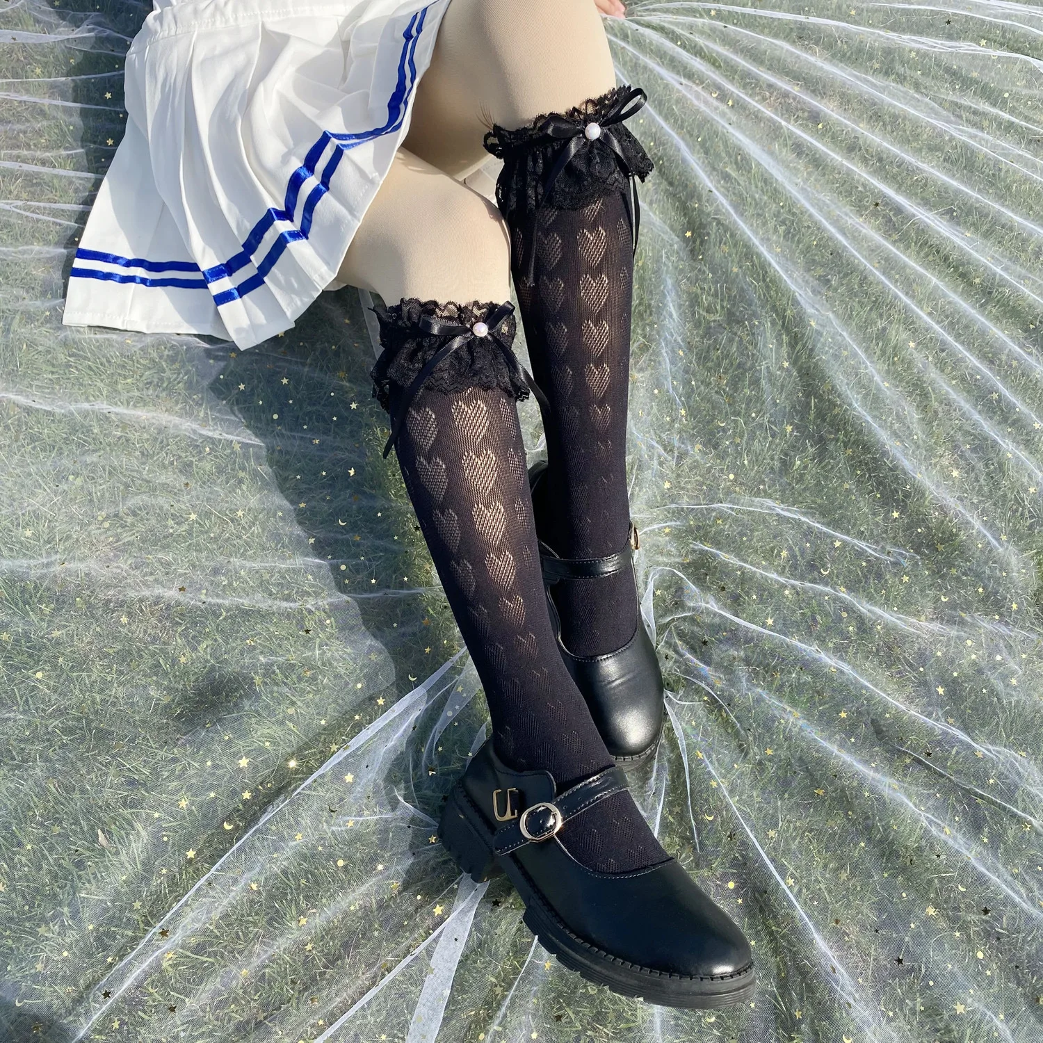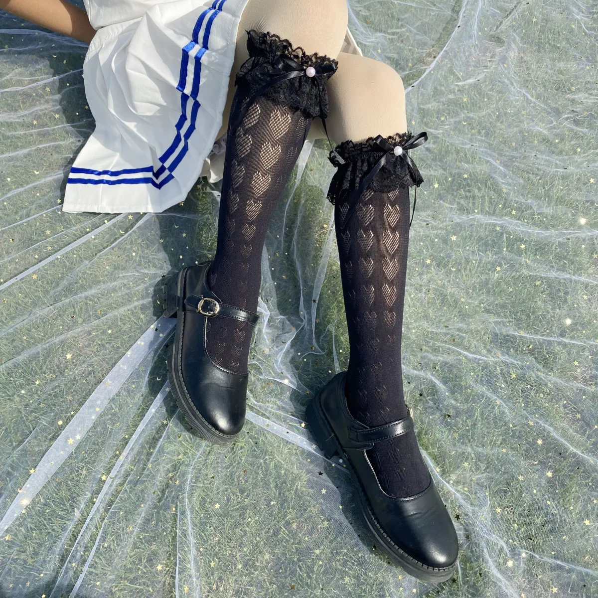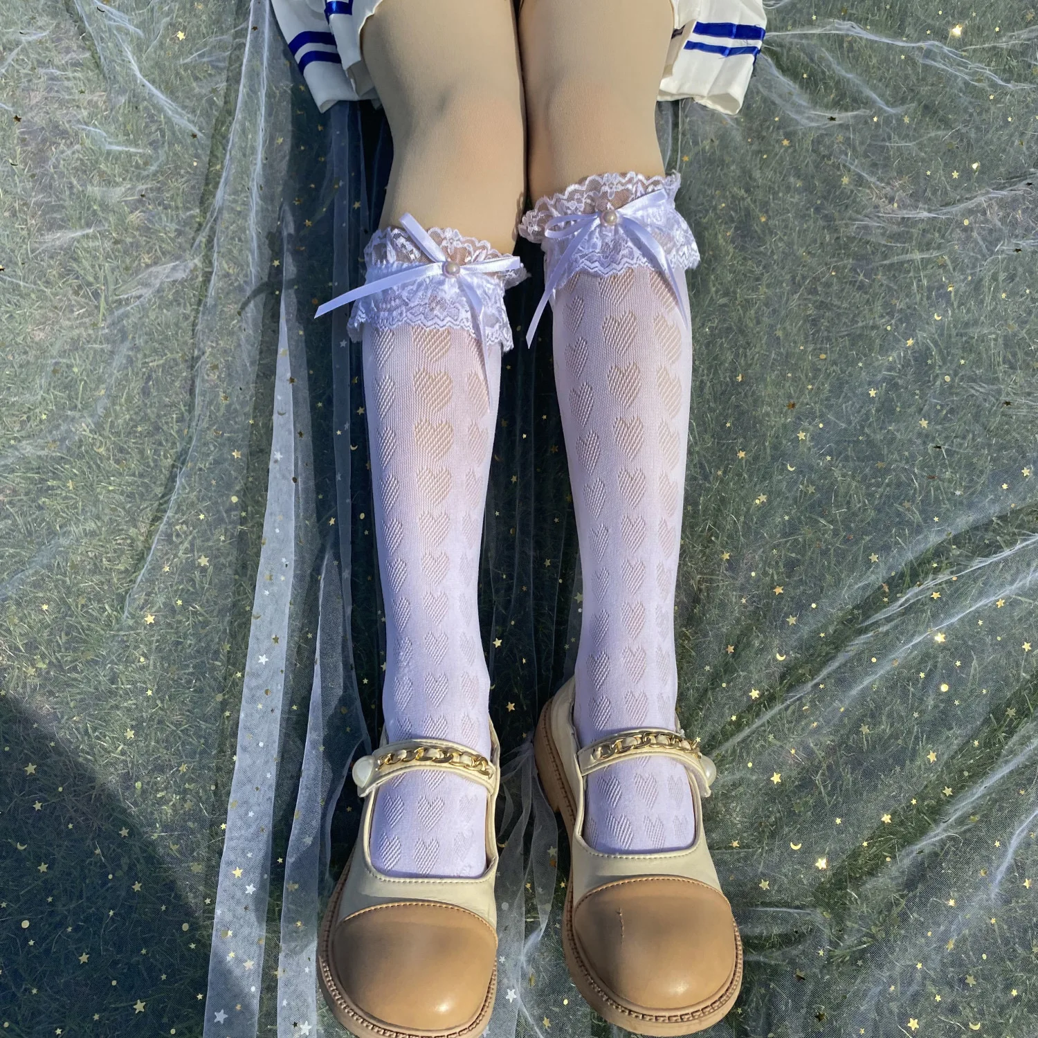 TAVIMART - lolita stocking bow fishnet dance socks lace Socks Mid length Socks