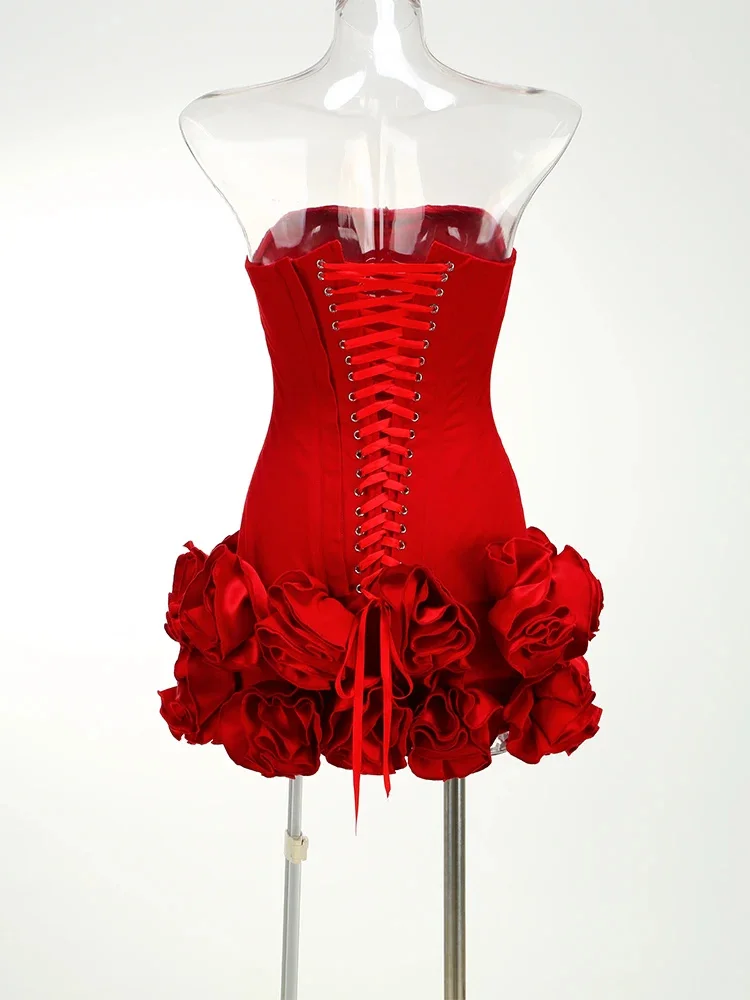 TAVIMART - Luxury Christmas Dress Sexy Strapless Backless Red Structured Floral Embellished Mini Dresses Woman Bodycon Cocktail Party Gowns