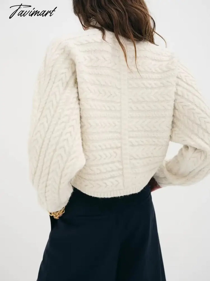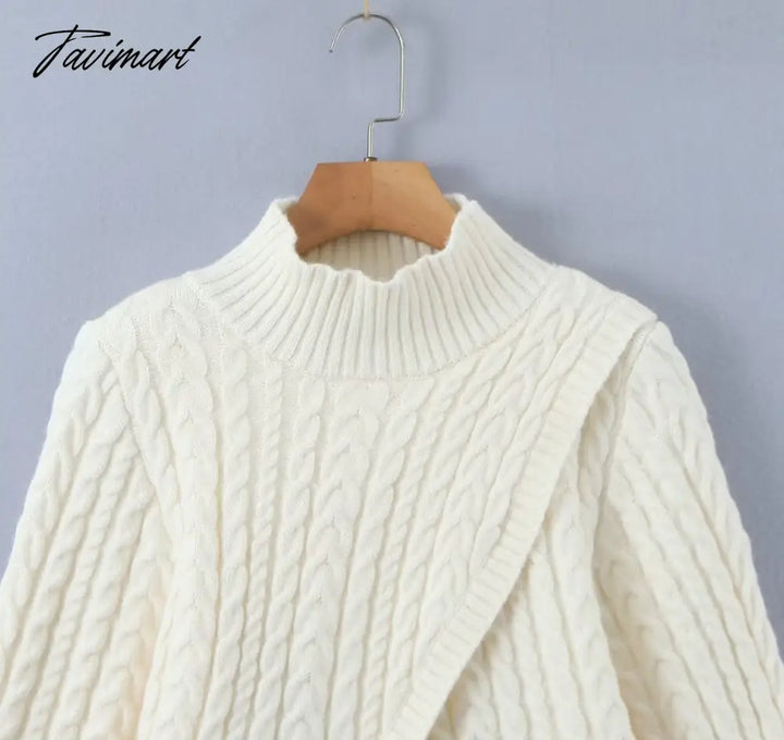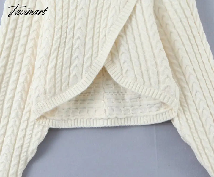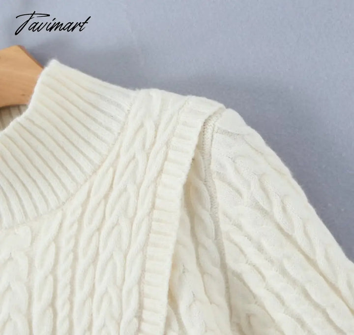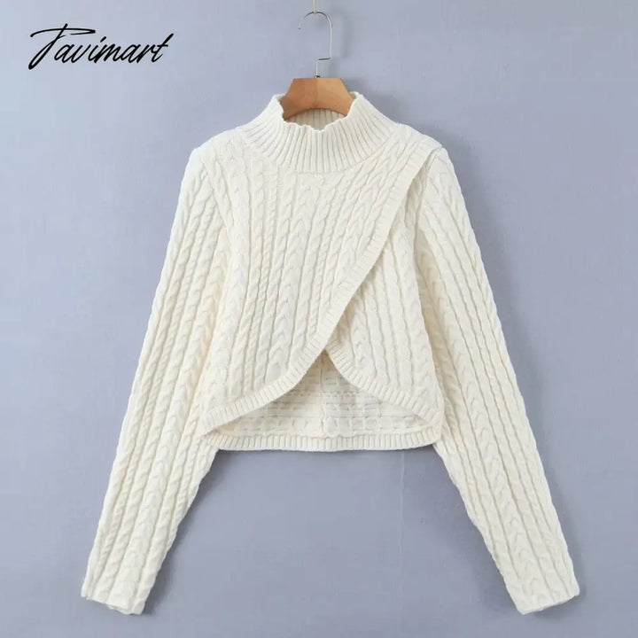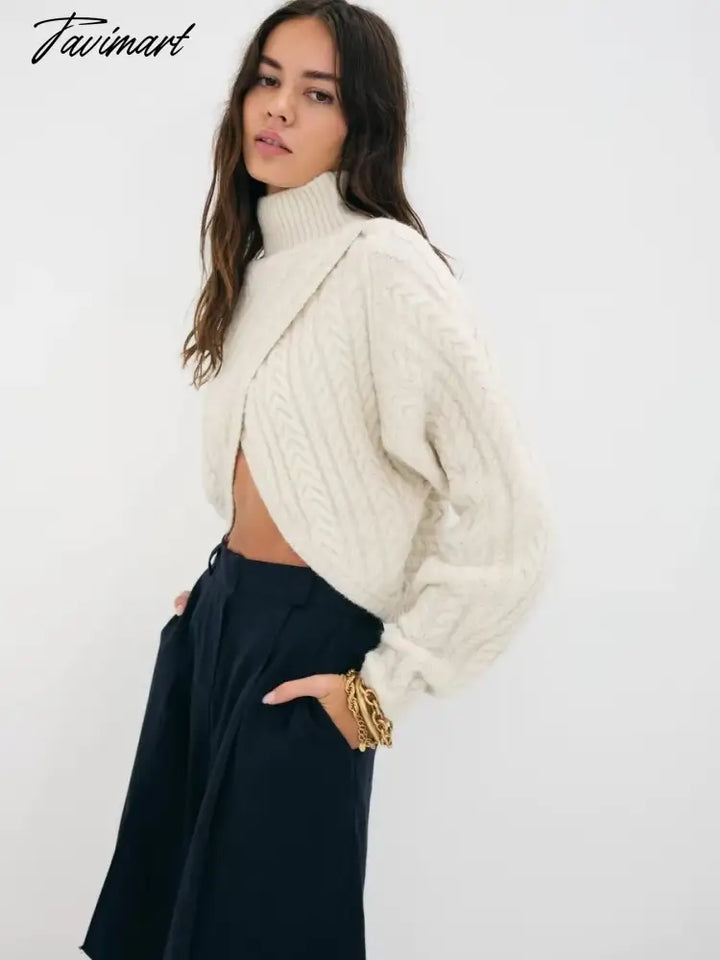 Tavimart Ins Blogger Vintage Sweaters Women Turtleneck Knitwear Asymmetry Sexy Short Tops