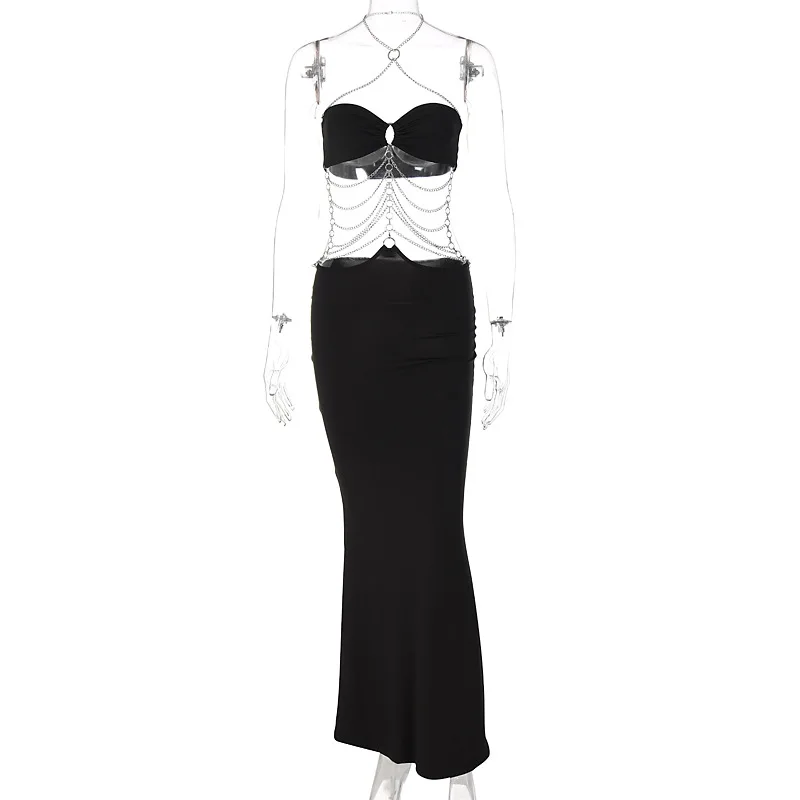 TAVIMART - Metal Chain Halter Hollow Out Party Dresses Women Evening Sexy Sleeveless Maxi Dress Wrap Elegant Dresses for Women Clothing