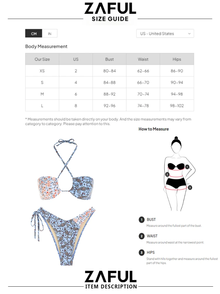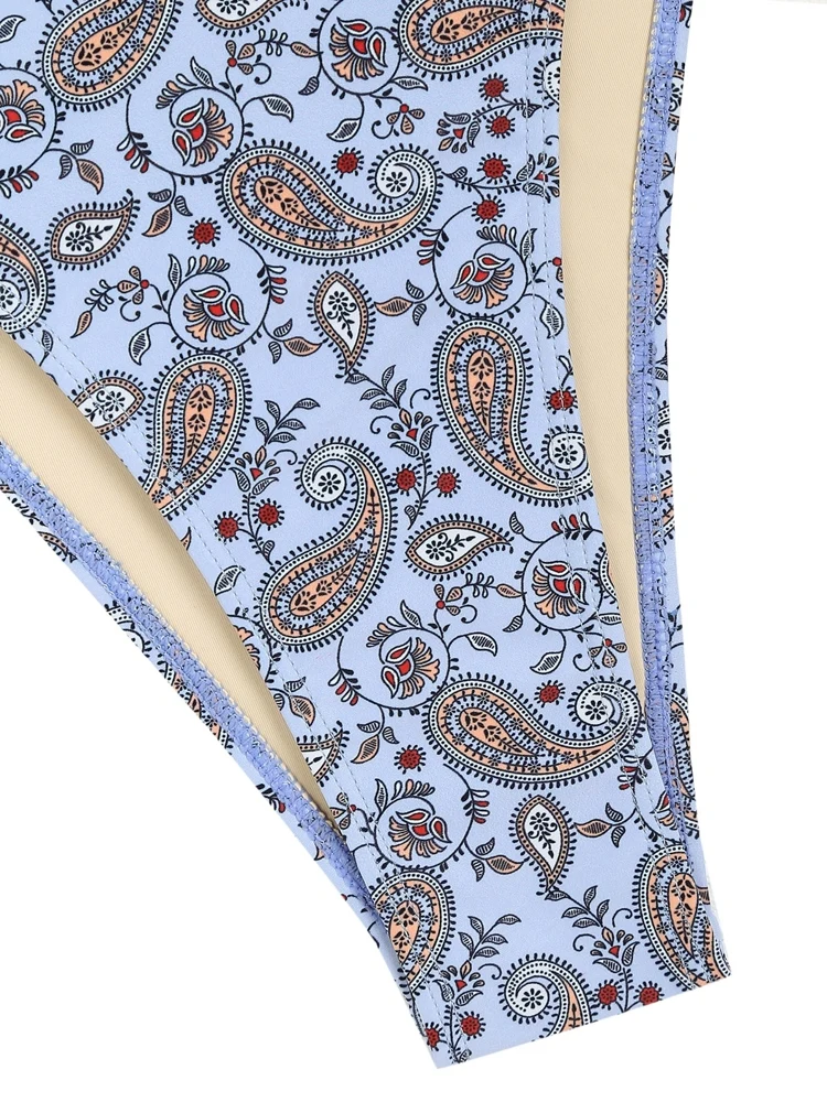 TAVIMART - Multiway Floral Paisley Print Swimsuit For Women High Leg Bikini Swimwear Halter Bandeau Bikini Top And Tie Color Block