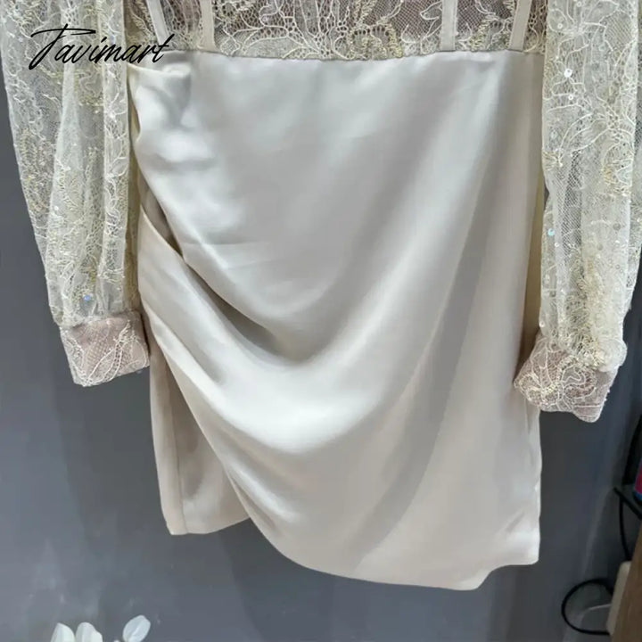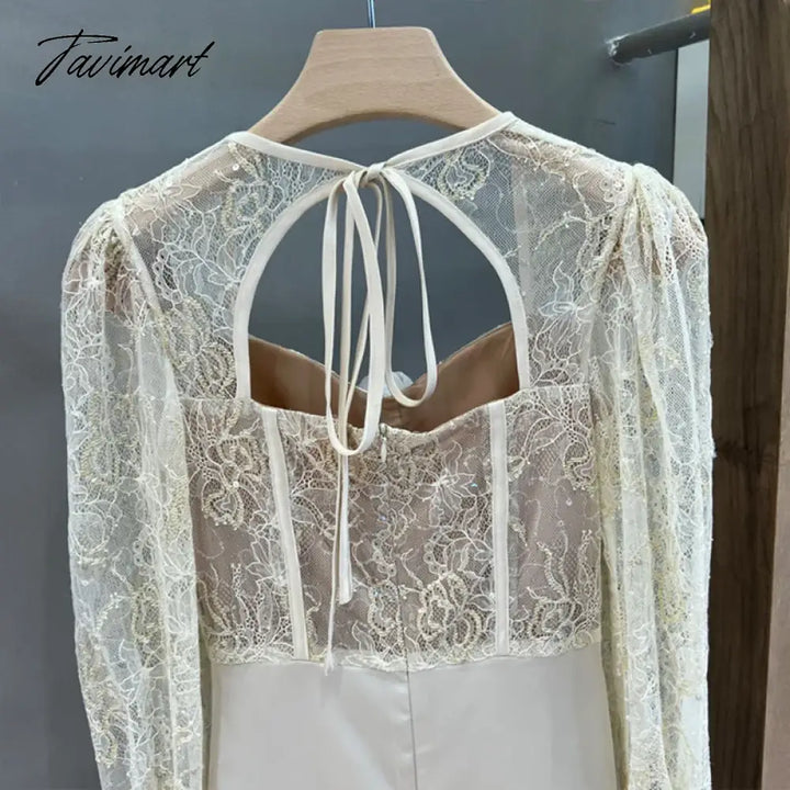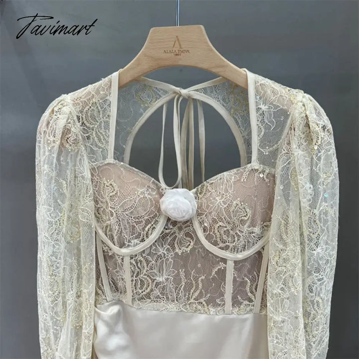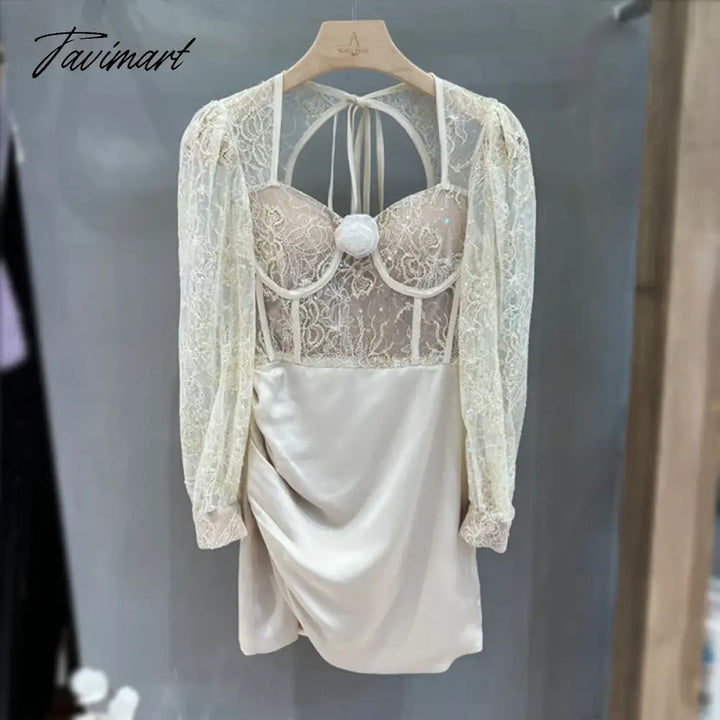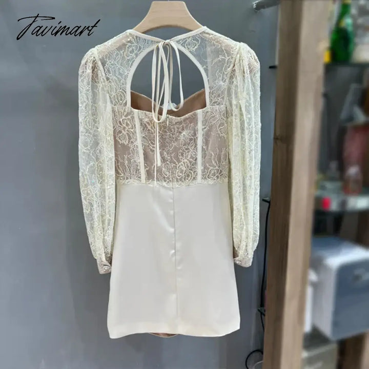 TAVIMART - New Autumn Sexy Lace Patchwork Backless Long Sleeve Holiday Vocation Beach Women Mini Dress