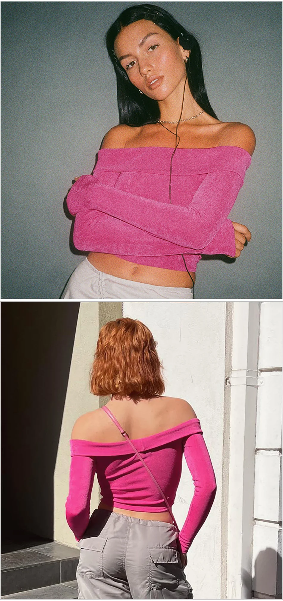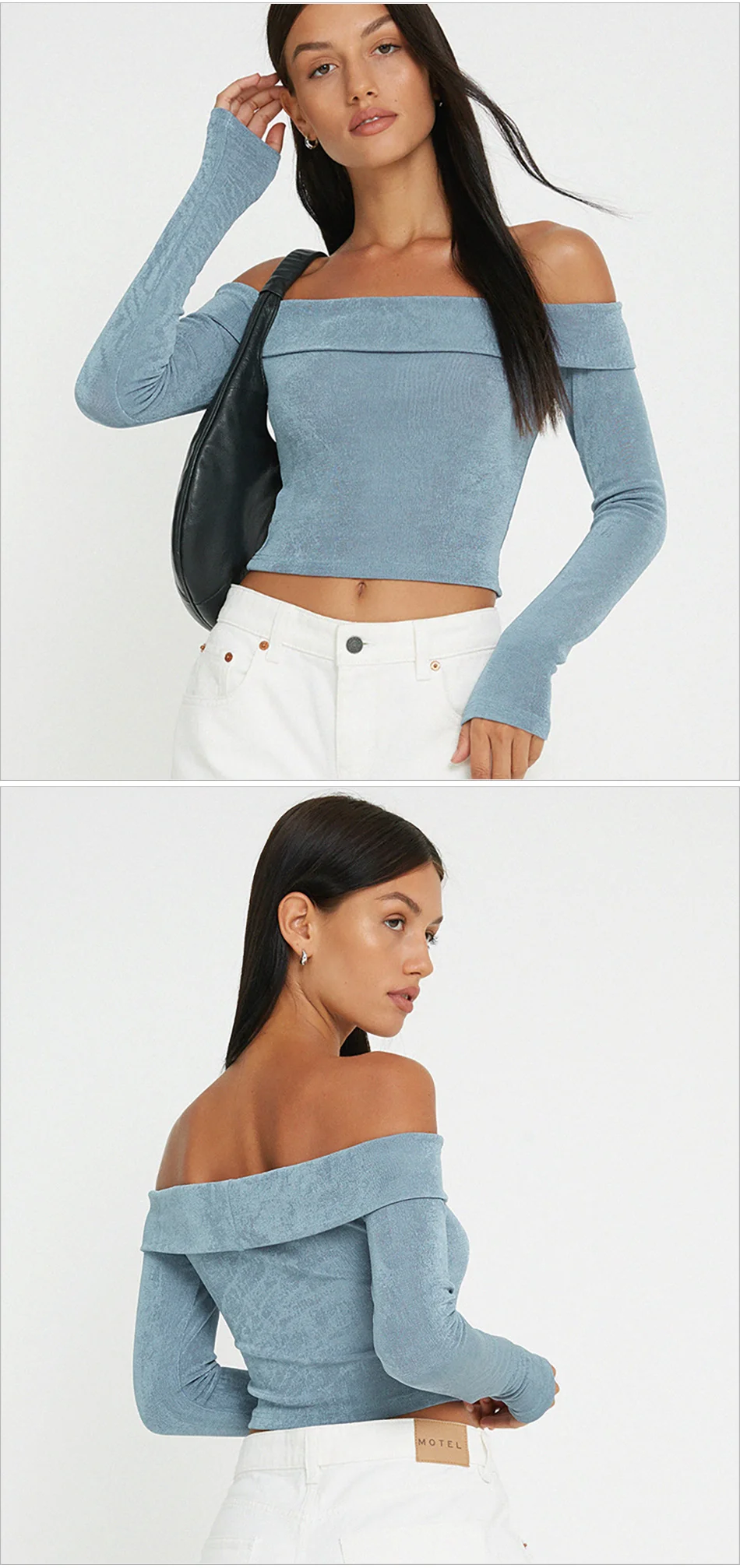 Tavimart New Stylish Shoulder Sleeves Solid Color Casual Navel Shirt T-shirt