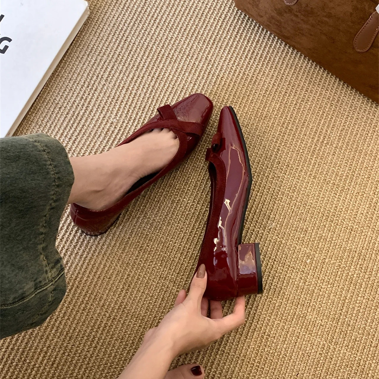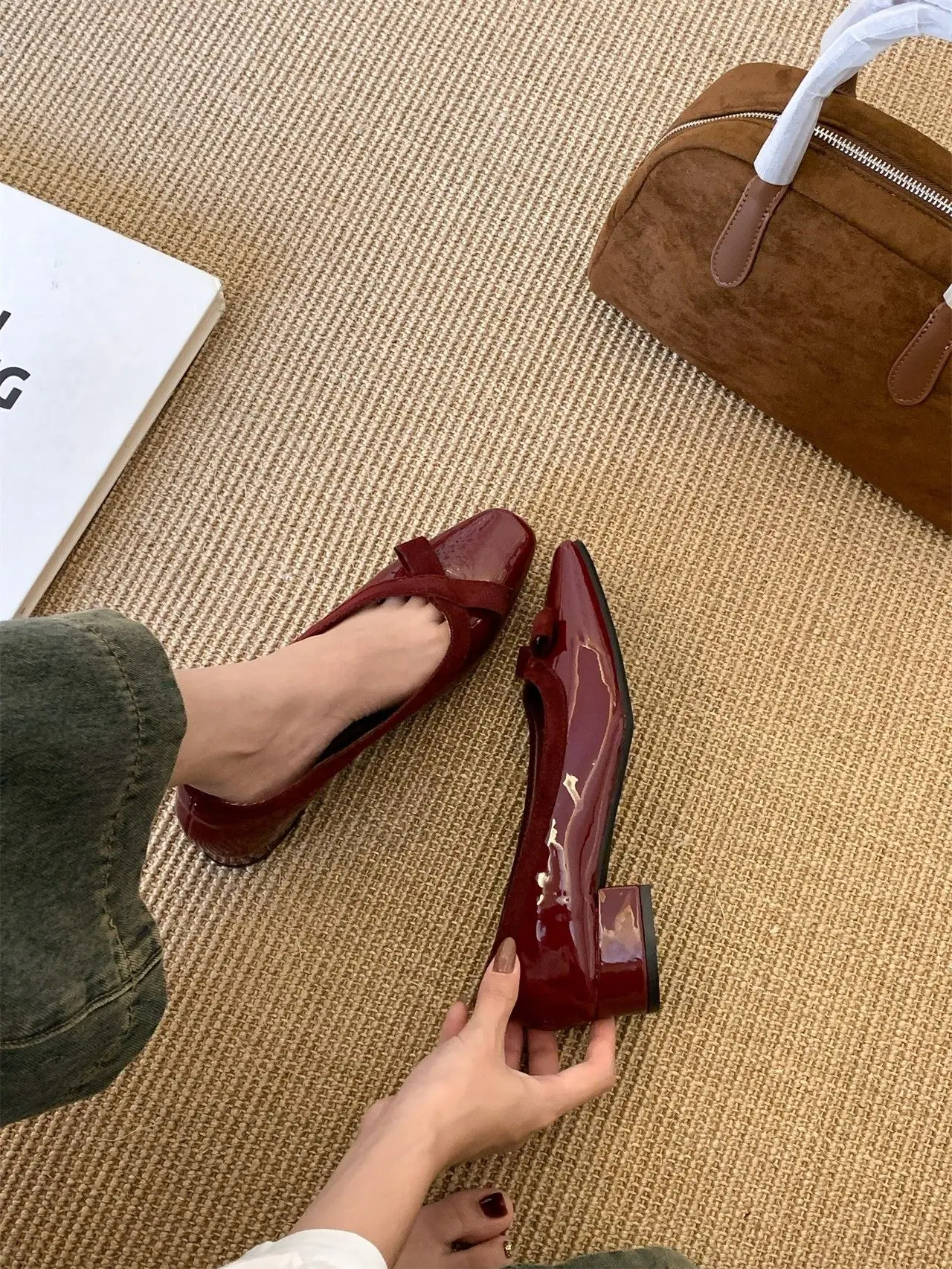 TAVIMART - New Women Retro Gentle Bowknot Flat Shoes Korean Fashion Elegant Red Square Toe Low Heel Pumps Ladies Dress Loafers Casual Shoes