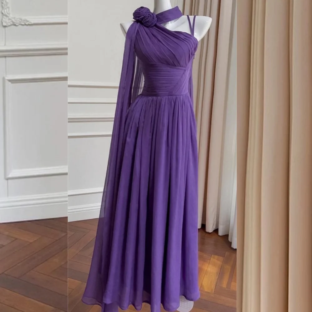 TAVIMART - Pastrol Chiffon Flower A-line One-shoulder Midi Dresses Homecoming Dresses Formal Casual Simple Retro Fashion Elegant Exquisite