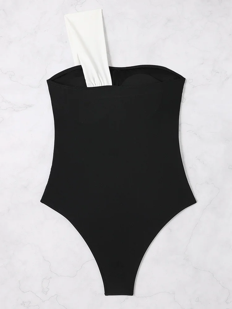 TAVIMART - Patchwork Bikinis One Shoulder Swimwear Pleated Swimsuits Woman Sexy Bathing Suit High Waist Beach Wear Summer Monokini