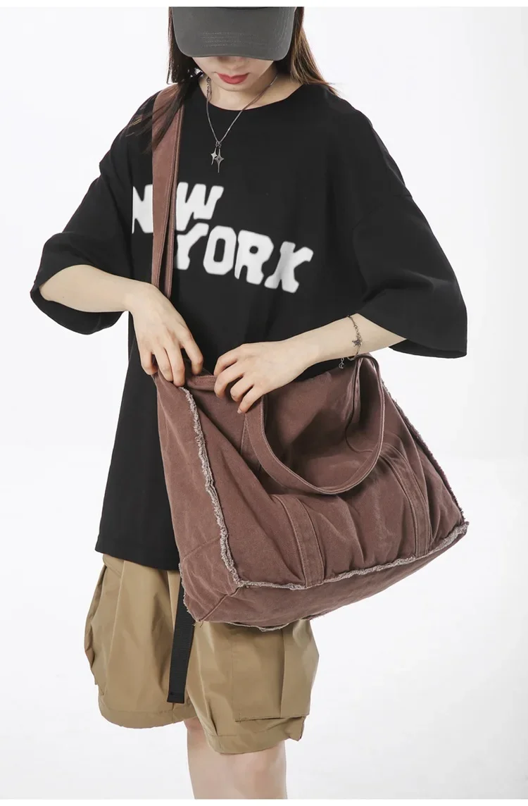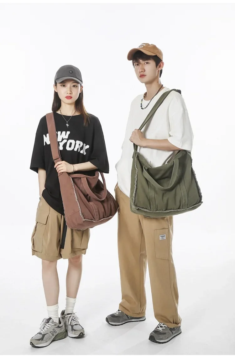 TAVIMART - Personality Canvas Women's Handbags Men Women Grunge Streetwear Shoulder Bag Fashion Vintage High-capacity Crossbody Bags Y2k