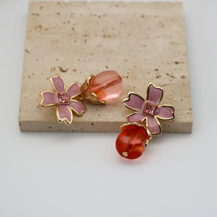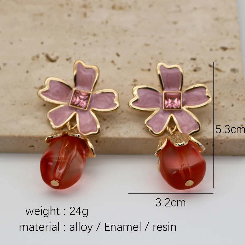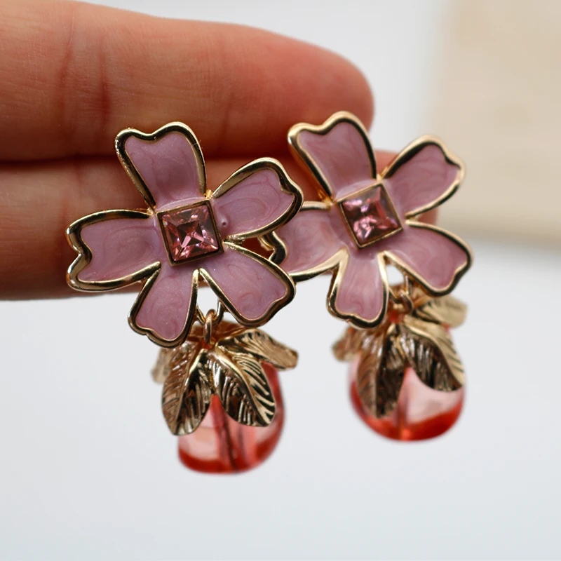 TAVIMART - Pink Flower Enamel Elegant Earrings Exaggerate Women Trend Fashion Jewelry Wedding Party Gifts Accessories Personality QD202