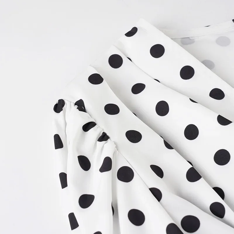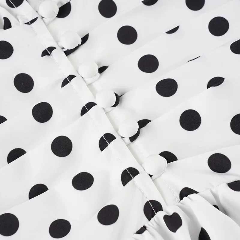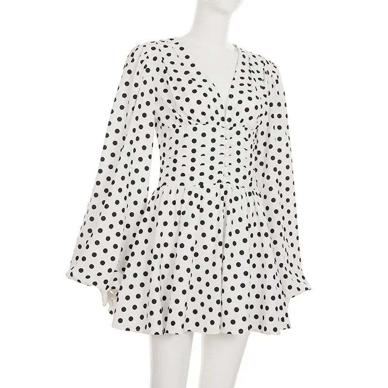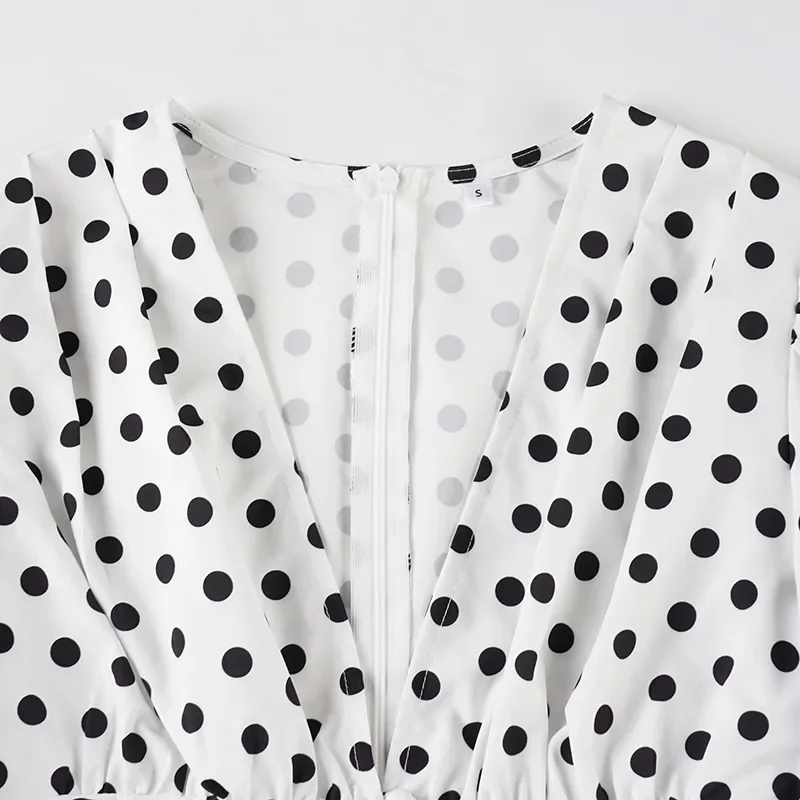 TAVIMART - Polka Dot Puff Sleeve Mini Dress For Women Deep V neck sexy High Waist A-line Dress Elegant Autumn New Female ommuting