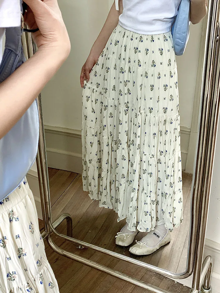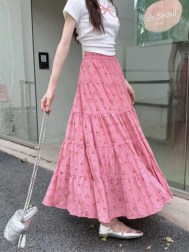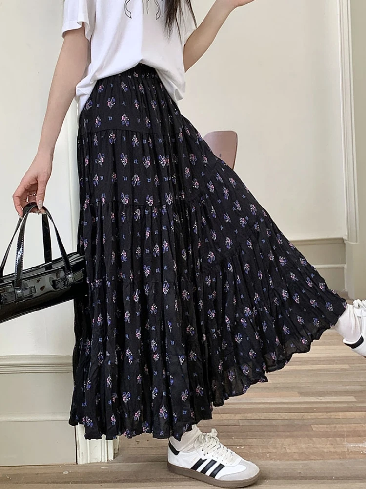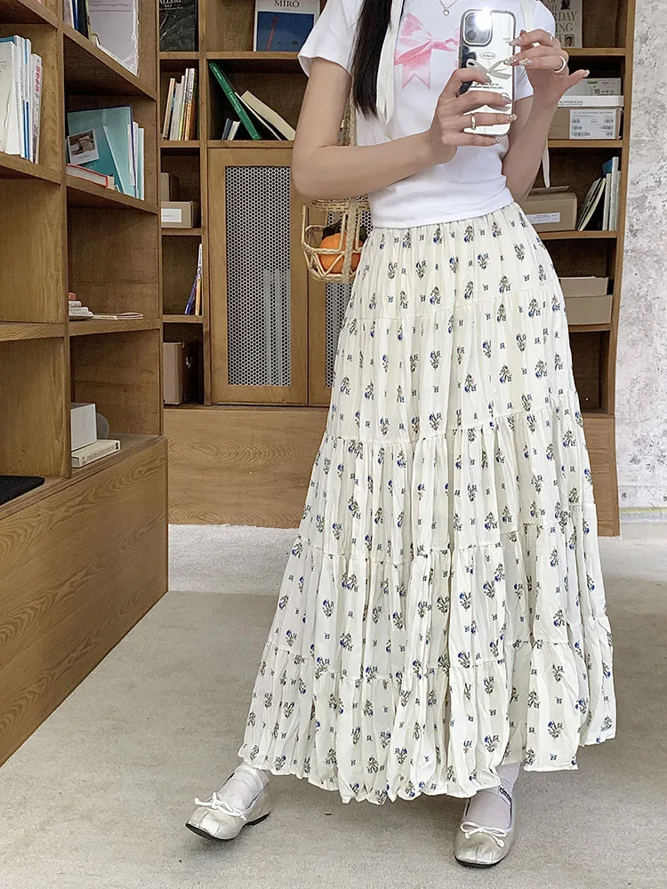 TAVIMART - Print Floral Summer Pleated Skirt Women Mori Girl Style Casual High Waisted Ruffle Midi Long Skirts falda plisada