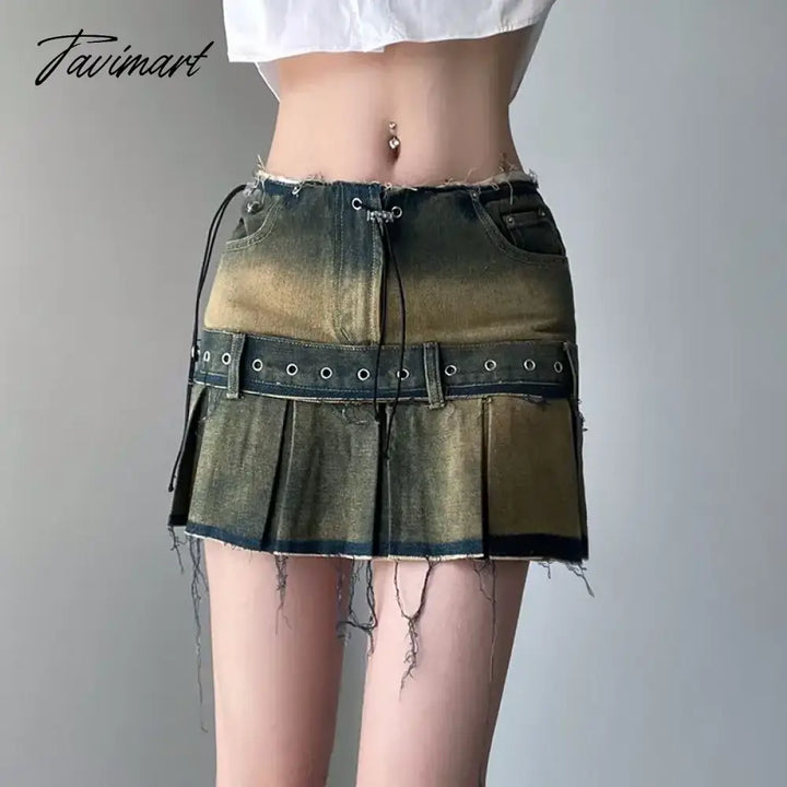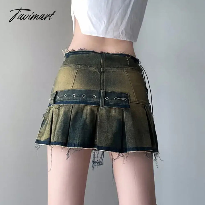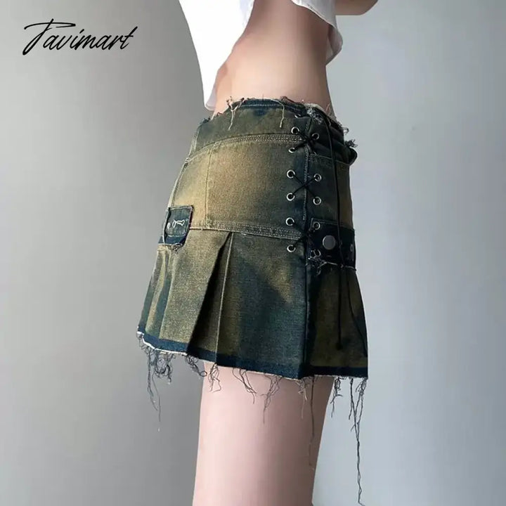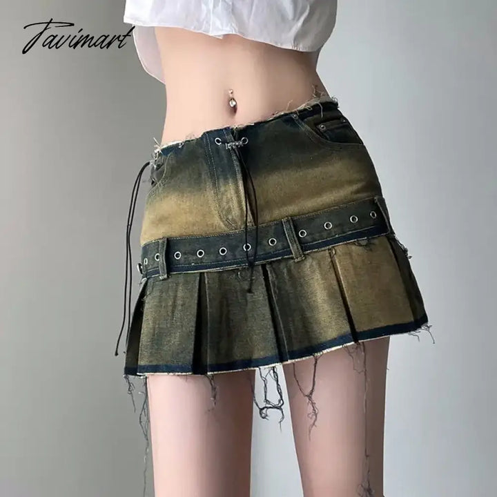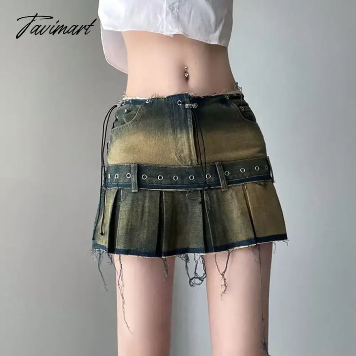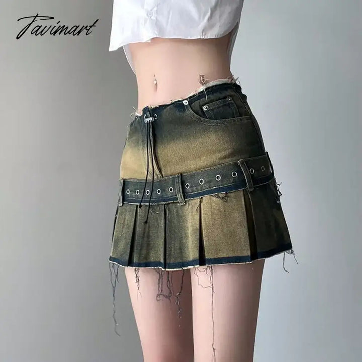 TAVIMART - Punk Low Y2k Mini Pleated Skirt 2024 Autumn Hot Sexy Mini Dress Vintage Grunge 2000 Women's