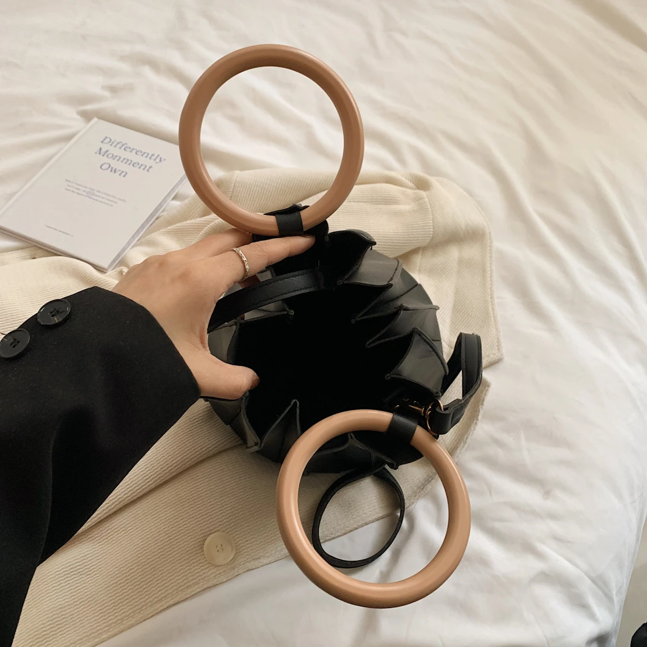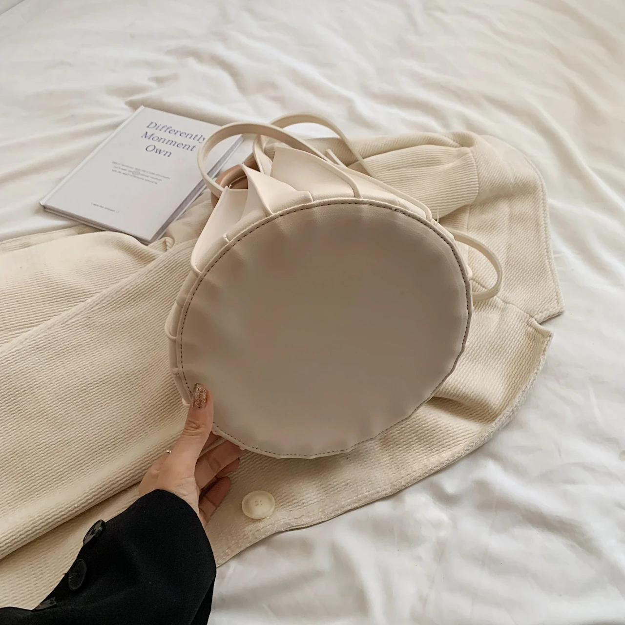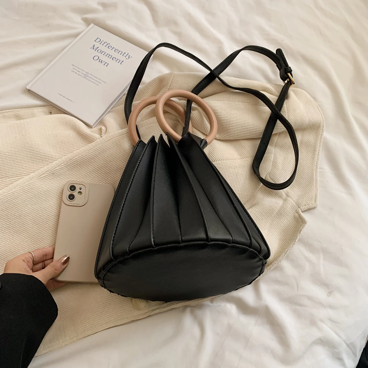 black bucket bag, white bucket bag, brown bucket bag |