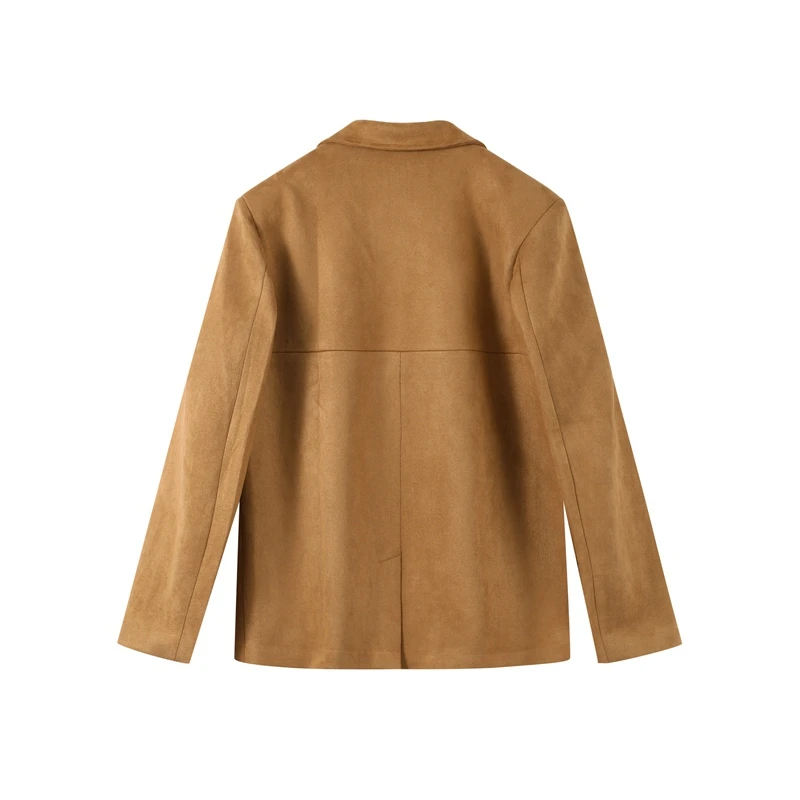 TAVIMART - Retro Suede Female Jacket Chic Single Breasted Long Sleeve Lapel Loose Blazer Coat Women 2025 Spring High Street Lady Outerwear