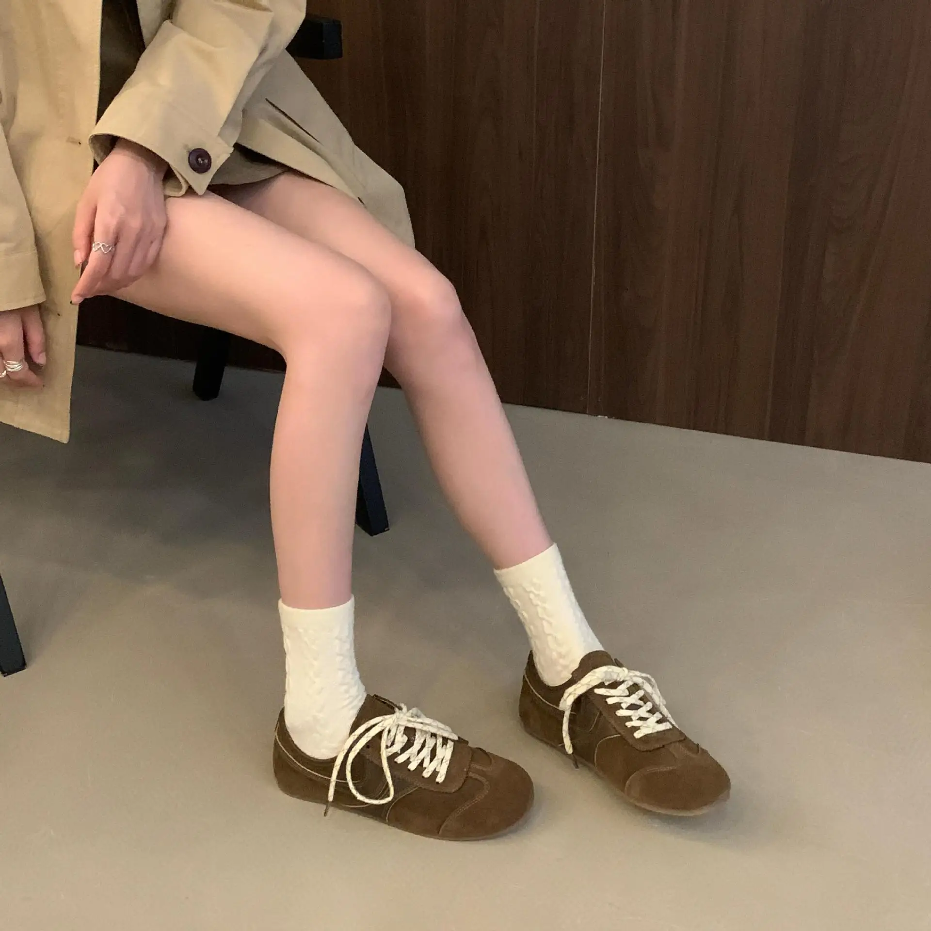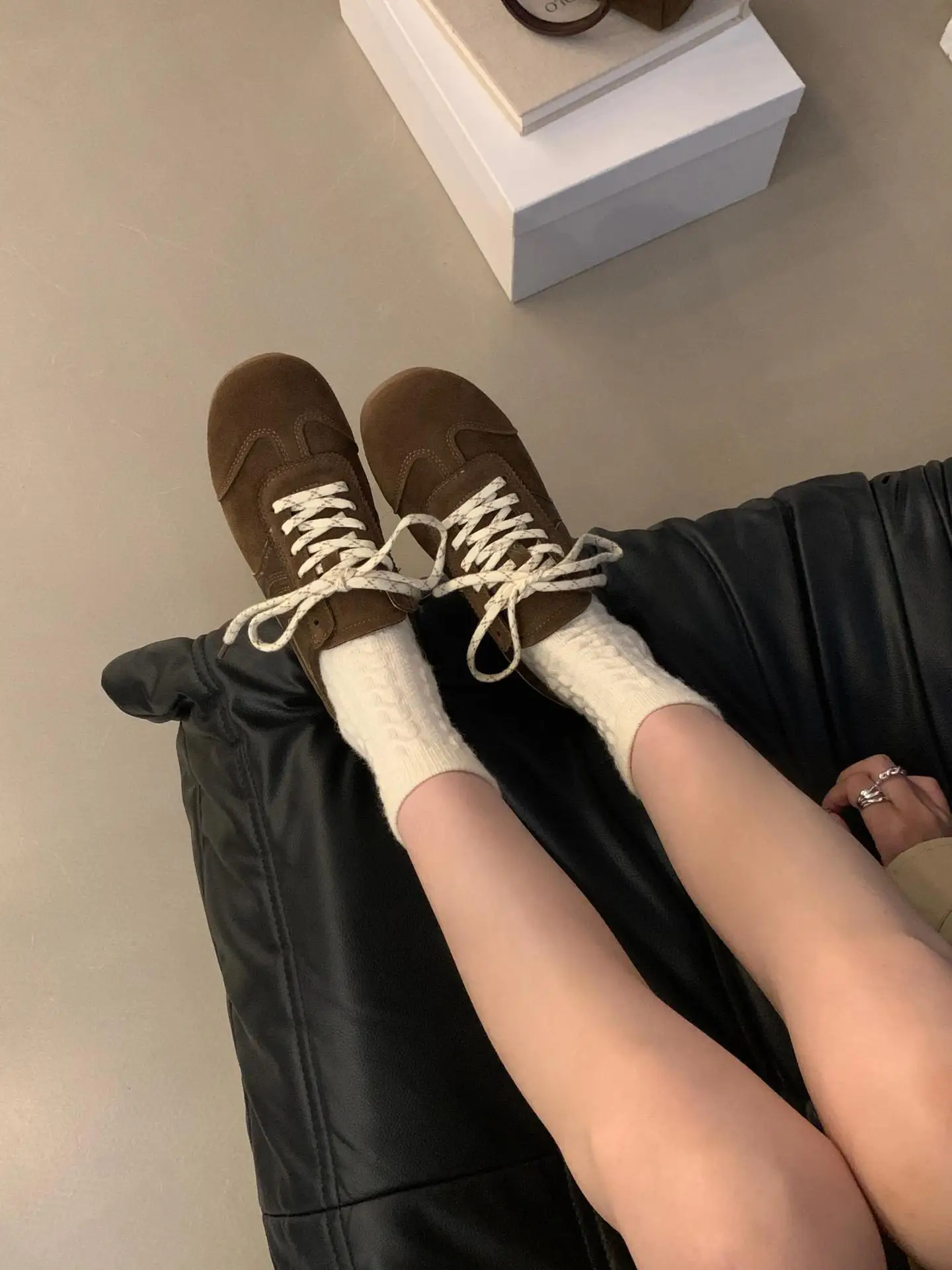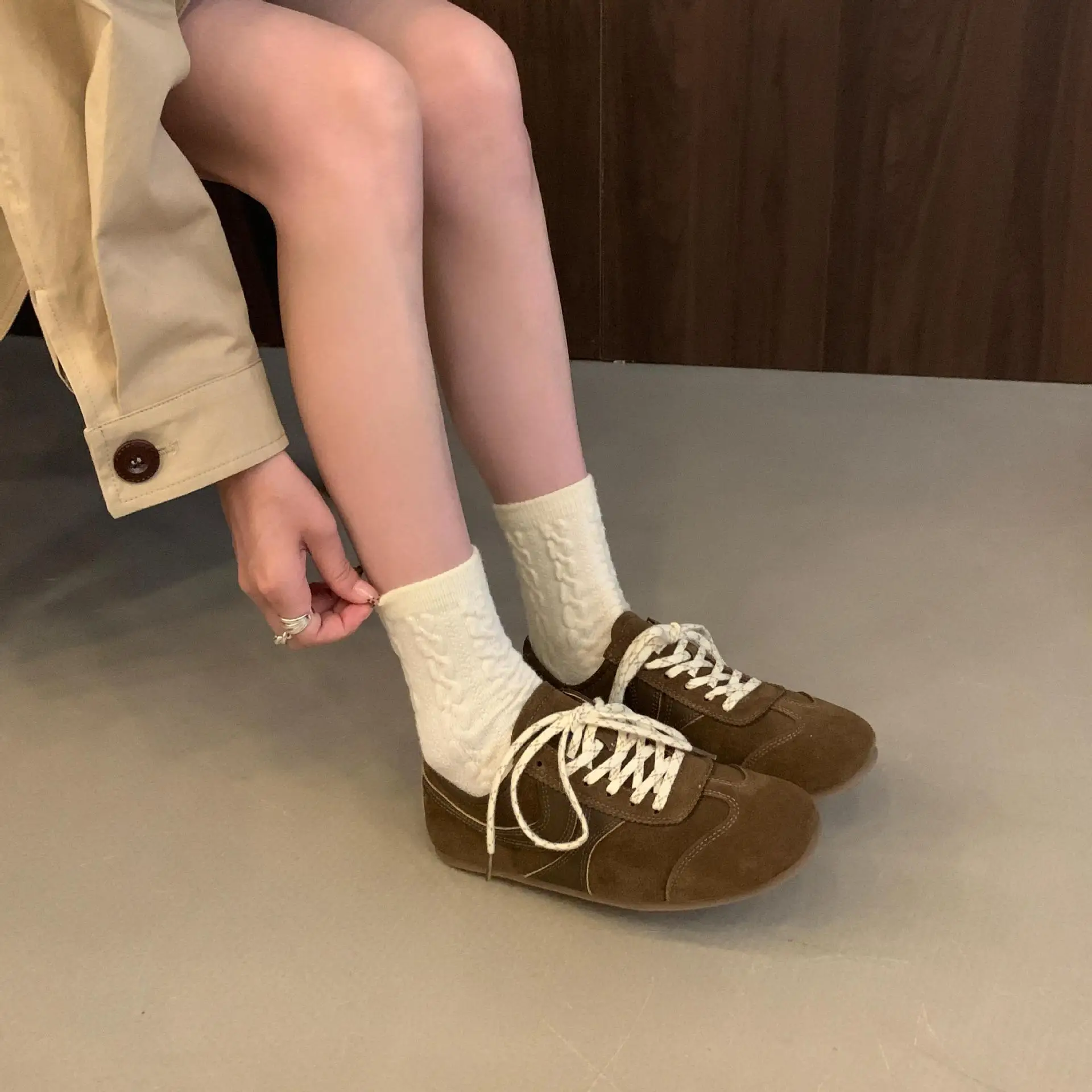 TAVIMART - Retro Woman Shoes Female Footwear Round Toe Autumn Casual Sneaker Summer New Dress Fall Flat Fretwork Rubber Leisure Lace-Up Sol
