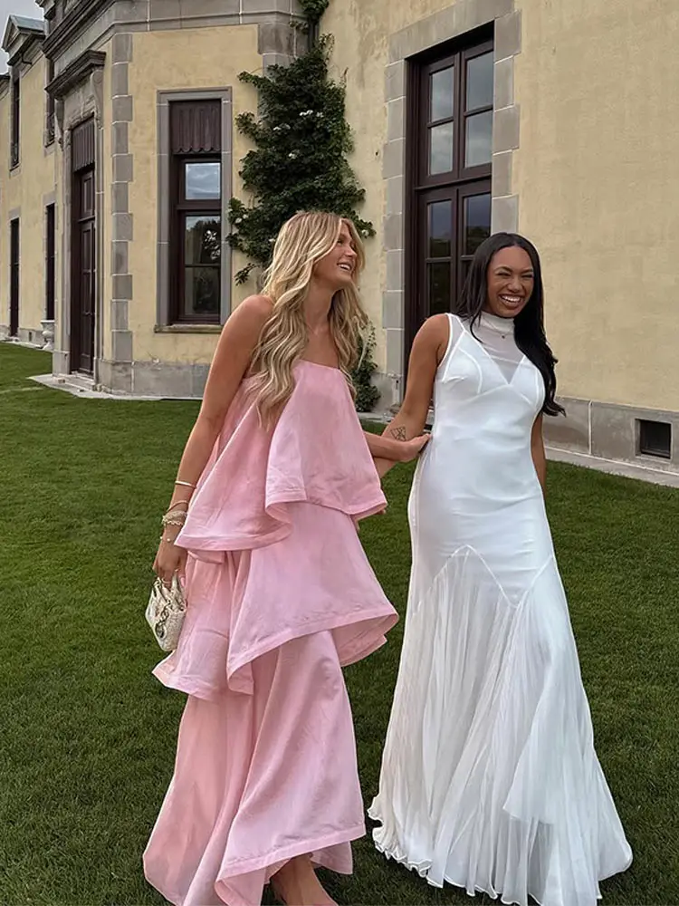 TAVIMART - Ruffled Multi Layered Slip Dress Large Skirt Hem Halter Loose Beach Suspender Robes Fluffy Strap Long Dresses Women's Clothing