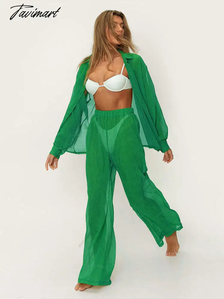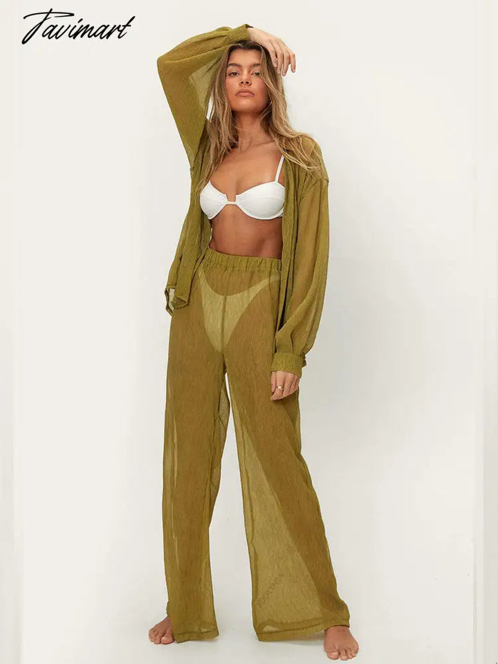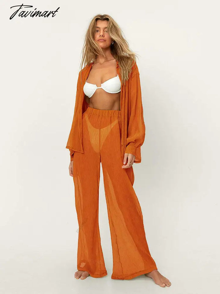Tavimart Sexy 2 pcs Solid Color Tops Pants Suit Casual Autumn Clothes Woman Long Sleeves Top Bottoms Full Length Pants Beach Wear A1780
