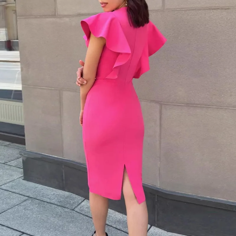 TAVIMART - Sexy Knitted Dresses Fashion Simple Solid Formal Office Clothing Women Elegant High Waisted O-neck Flying Sleeve Wrap Hips Dress