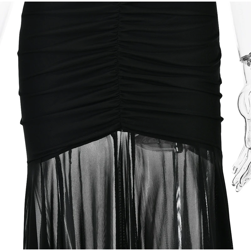 TAVIMART - Sexy See-Through Off-shoulder Dress Women Backless Slim Hip Package Female Long Party Dresses Autumn New Lady Maxi Robes