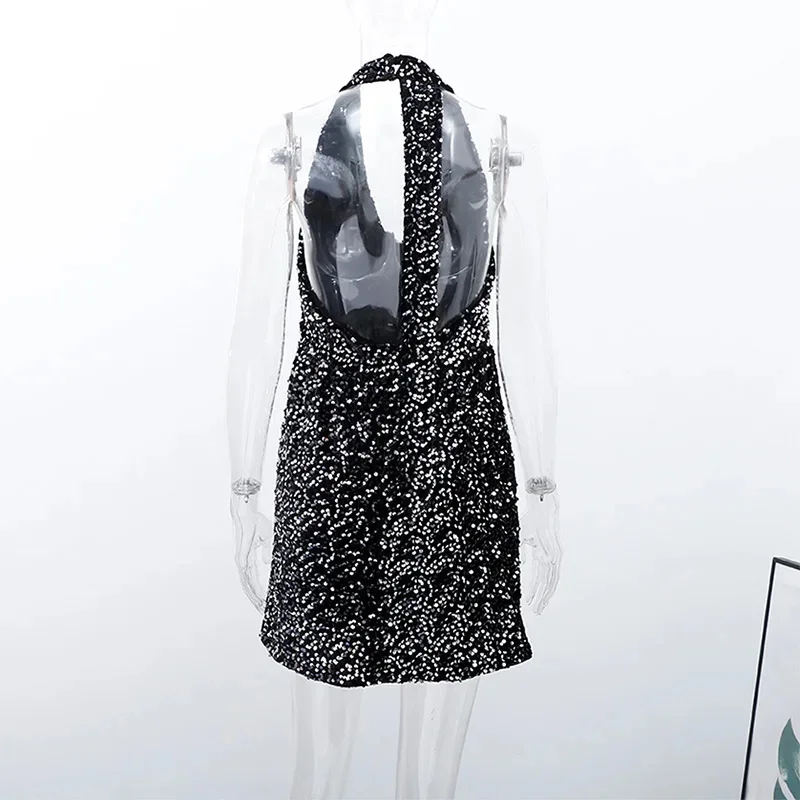 TAVIMART - Sexy Sequin Velvet Mini Dress Women Black Shinny V Neck A Line Sleeveless Loose Evening Dresses Female 2025 Fashion Party Robes