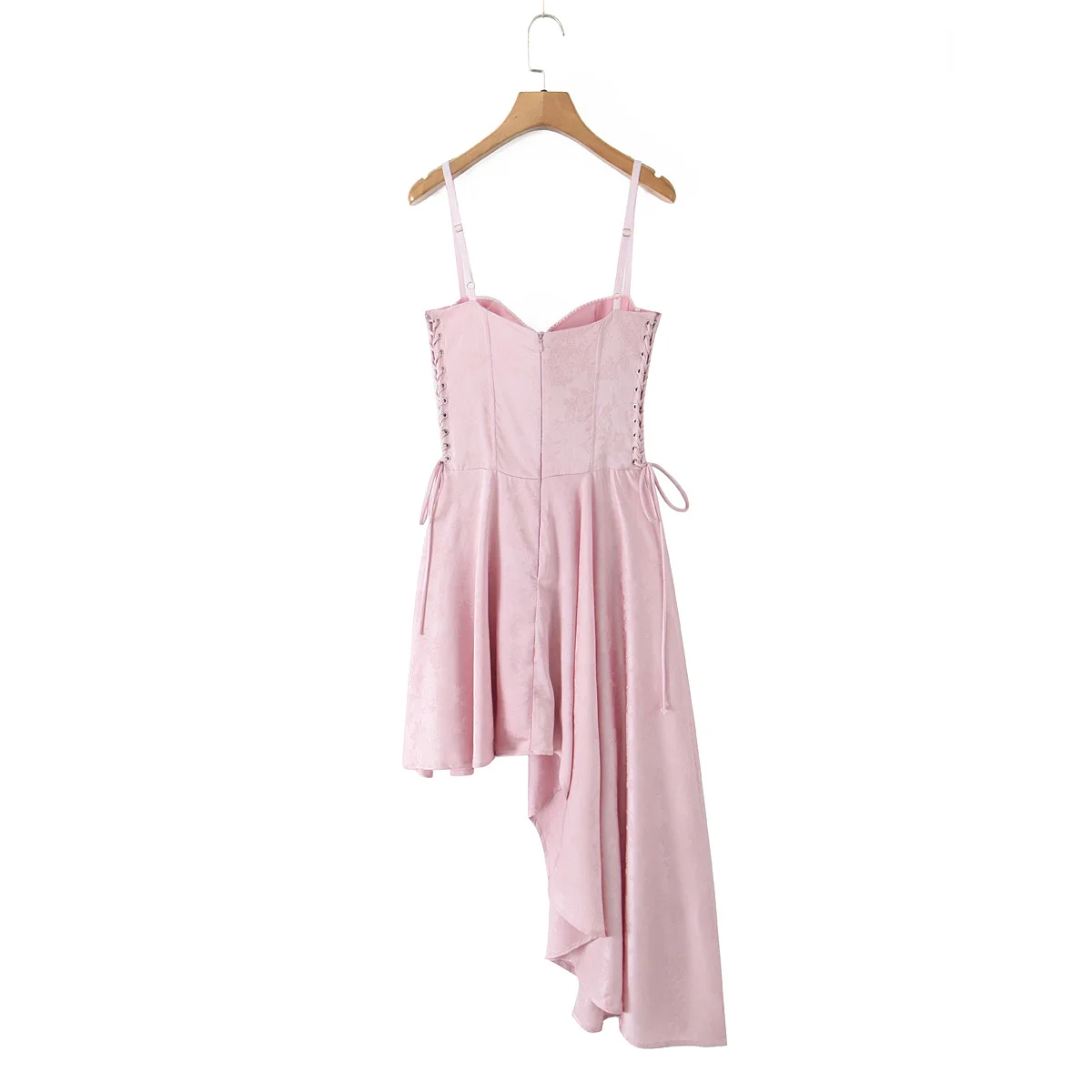 TAVIMART - Sexy Spaghetti Straps Fishbone Asymmetric Sling Dress Summer Women Side Lacing Up Bandage Party Mini Dresses Night Out Robe