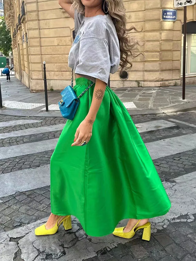 TAVIMART - Silk Patchwork High Waist Long Skirt Women's Summer Solid Color Skirt Fashion Simple Loose New Women's Long Skirt 2024