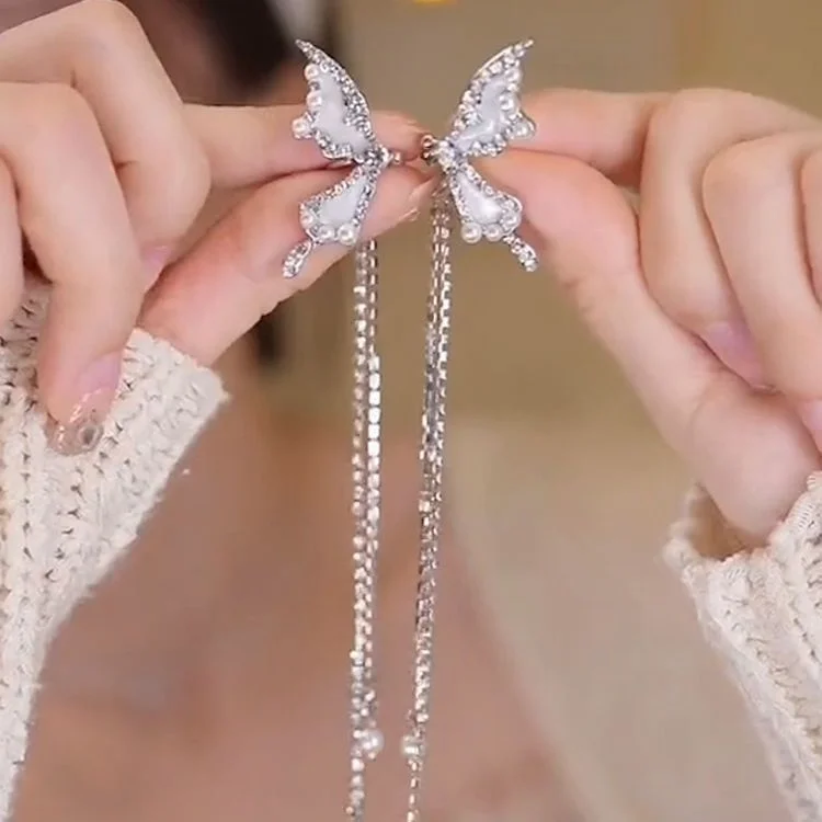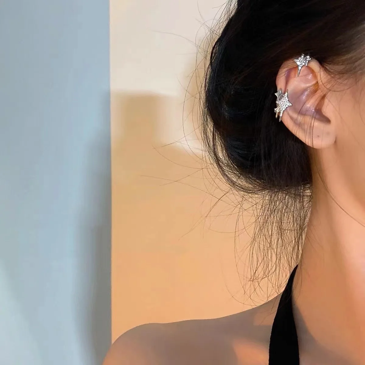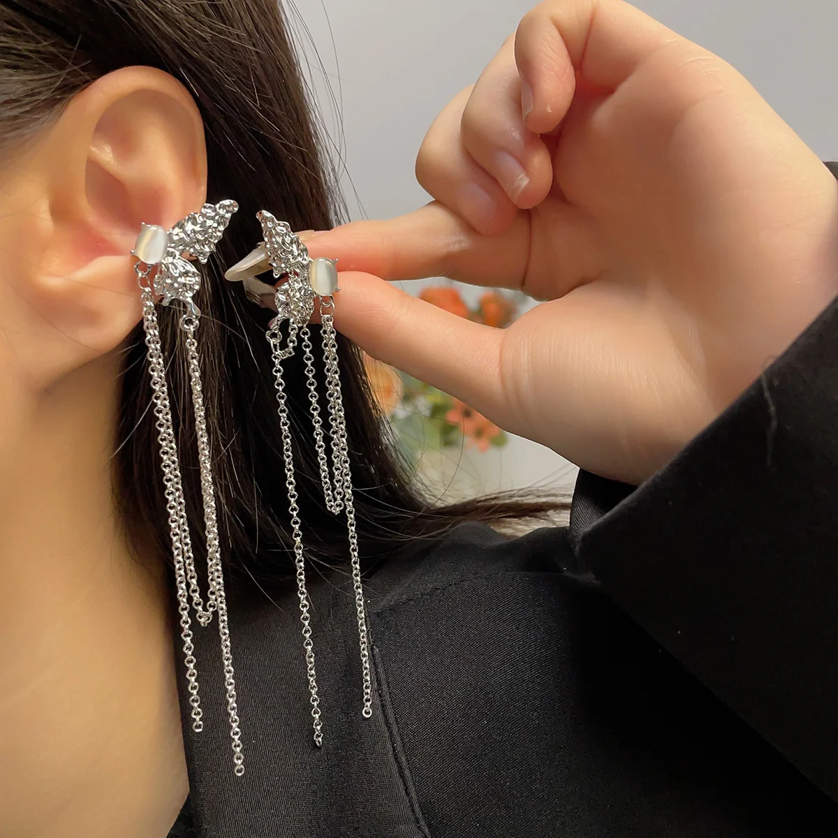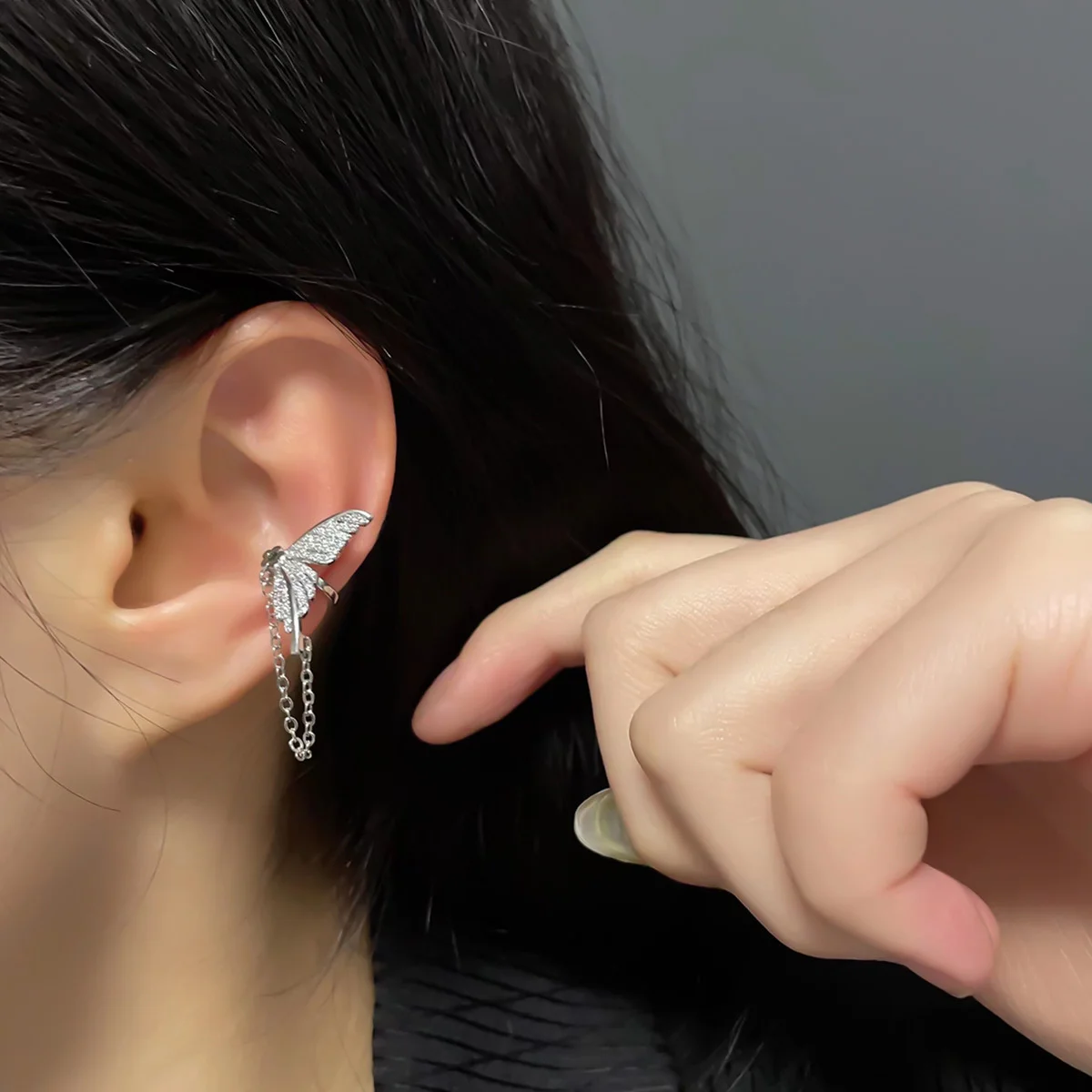 TAVIMART - Silver Color Crystal Tassel Non-Piercing Cuff Ear Clip Earring For Women Shiny Rhinestone Chain Fake Cartilage Piercing Jewelry
